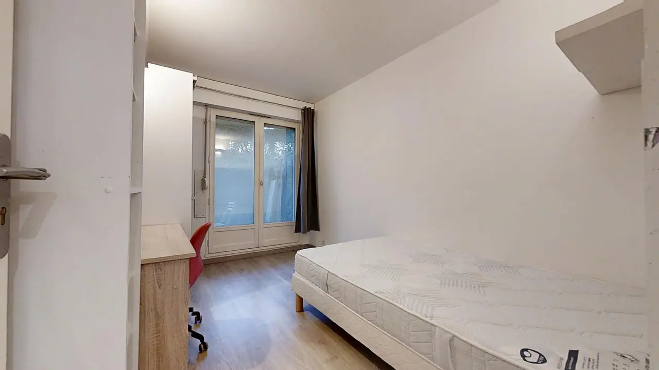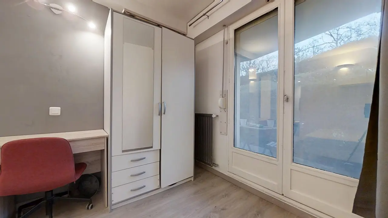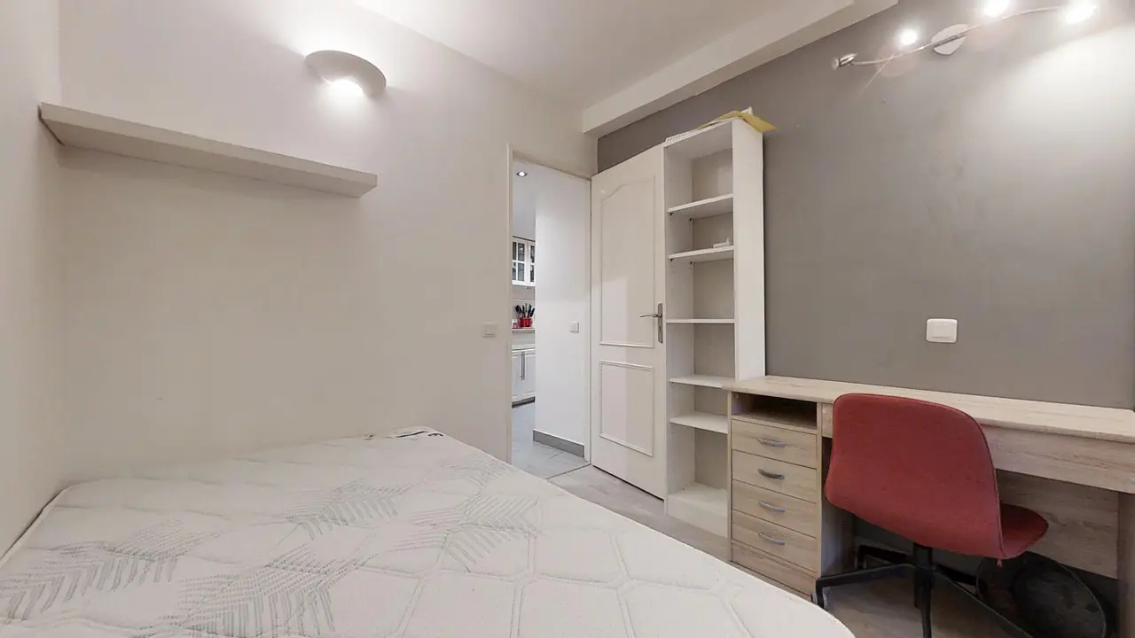 Les 4 chambres sont toutes équipées de la façon suivante : grand lit-simple (120x190), bureau, chaise de bureau et armoire.