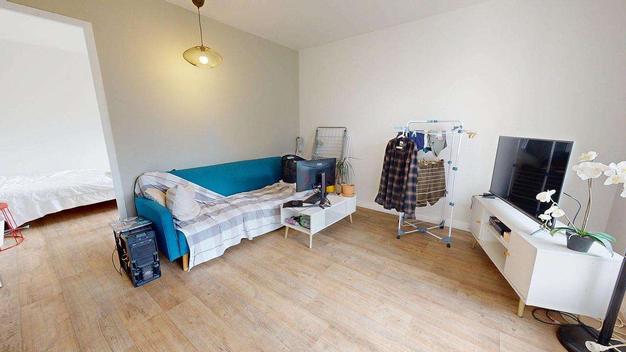 🏠 LES ESPACES COMMUNSLa pièce de vie, lumineuse et confortable, est meublée avec un canapé, une table basse, une télévision et donne accès à un balcon, parfait pour profiter des beaux jours.