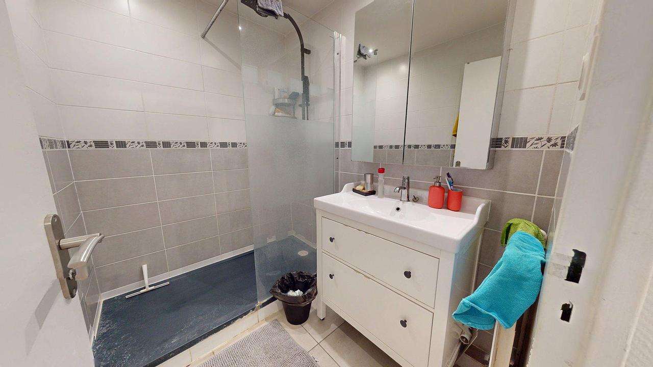 La salle d’eau dispose d’une douche à l’italienne, d’un meuble vasque avec miroir, ainsi que de rangements. Les WC sont séparés.