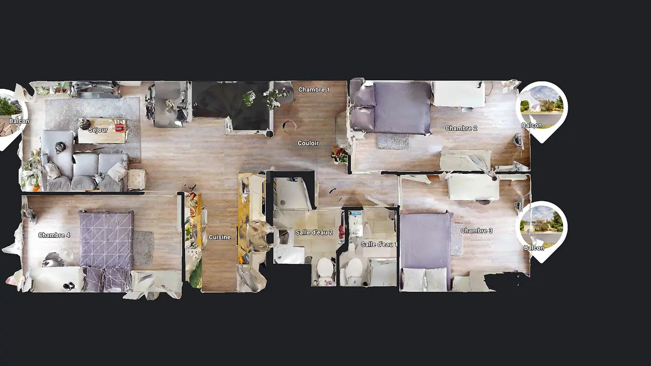 Trois balcons complètent cet appartement, un gain d'espace et de confort bienvenu. Il est loué avec un garage et une place de parking.