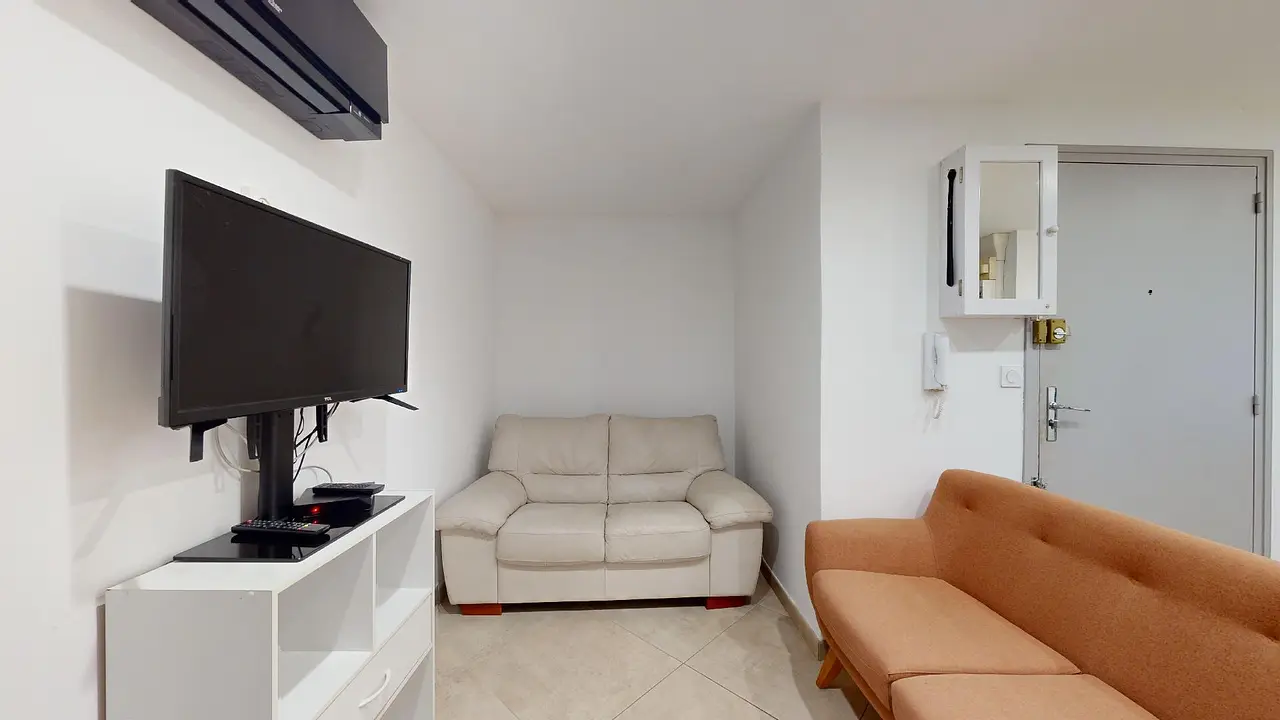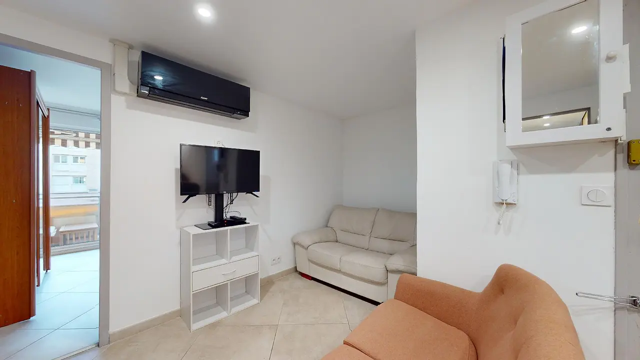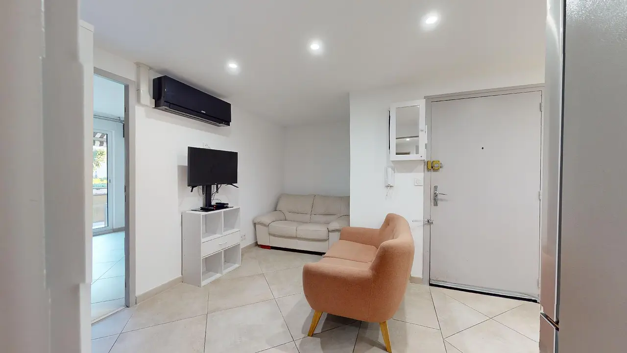 Cette colocation de cinq chambres s'ouvre sur une pièce de vie avec un salon et une cuisine ouverte. Cette pièce de vie est équipée d'une climatisation réversible avec pompe froid/chaud.