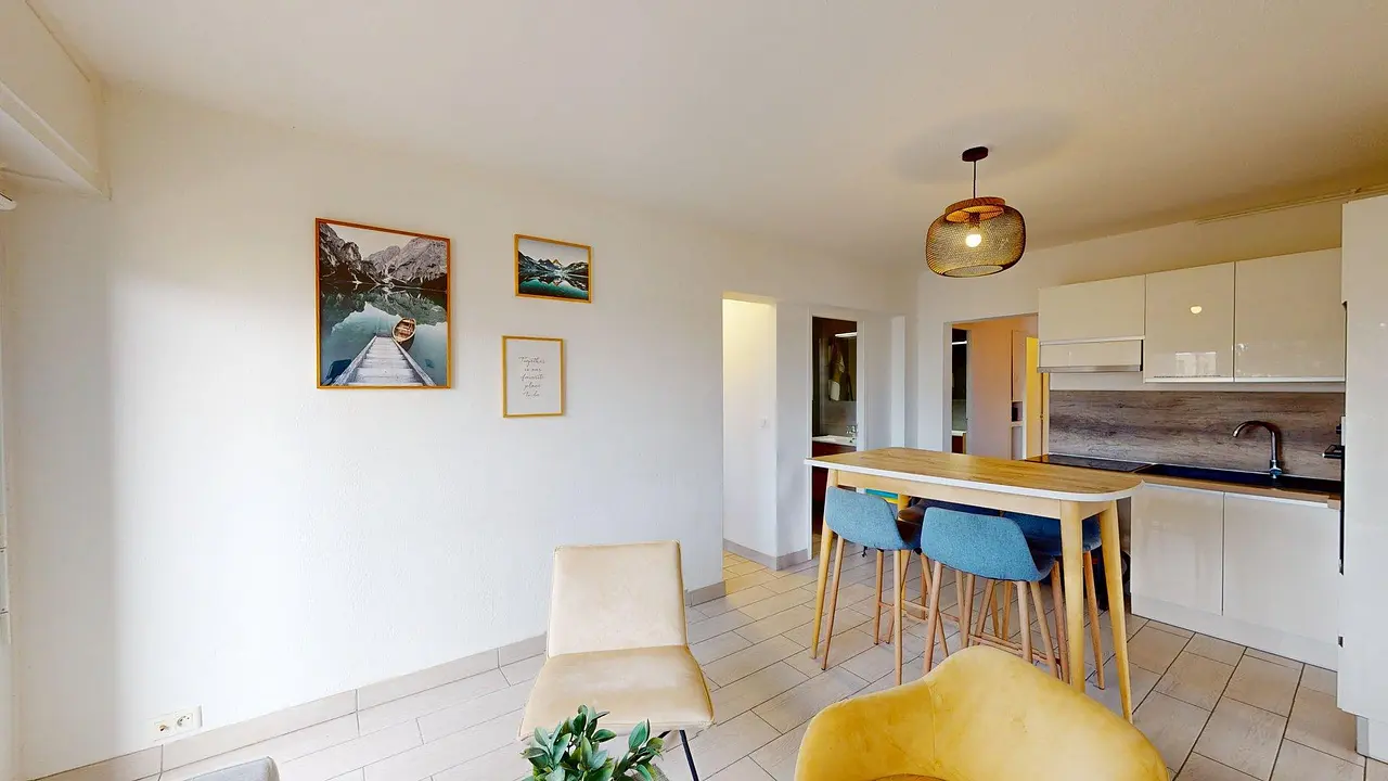 🏡 Notre agence vous présente cette colocation de 4 chambres de 85 m², située 6 rue Jean-Baptiste Charcot à Annemasse.🏠 LES ESPACES COMMUNSLa pièce de vie, conviviale et fonctionnelle, est meublée avec un canapé, deux chaises, une table basse