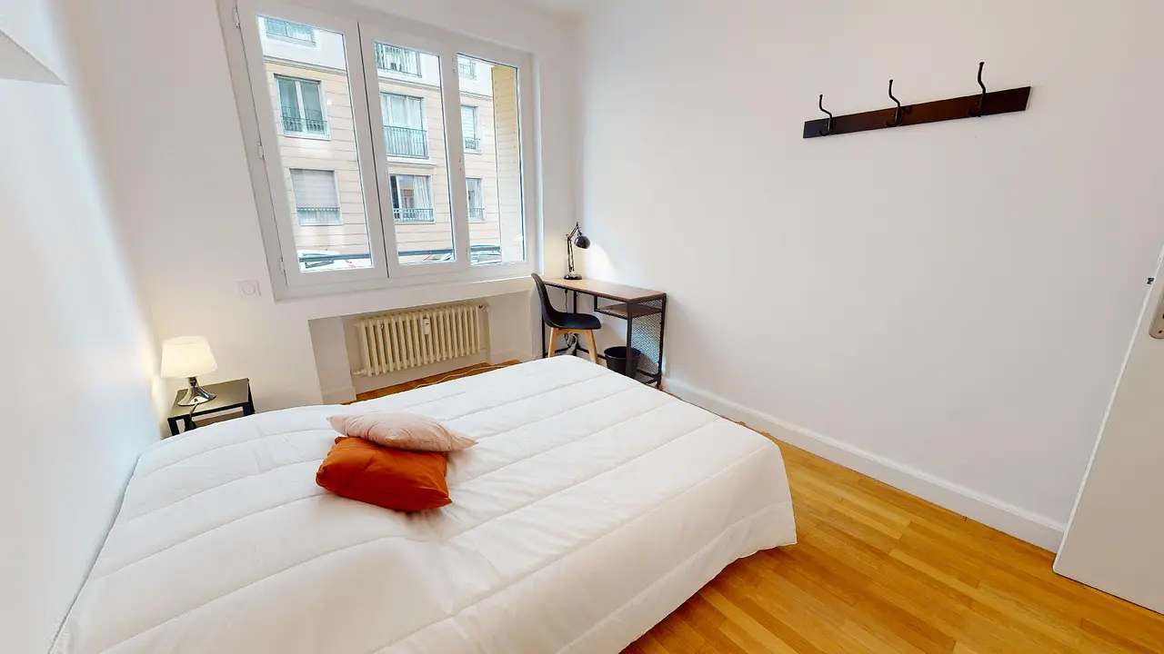 Cette colocation comporte donc 4 chambres toutes entièrement équipées et fonctionnelles à la décoration moderne. Ces chambres sont équipées avec des lits doubles, des bureaux, des chaises et des rangements.