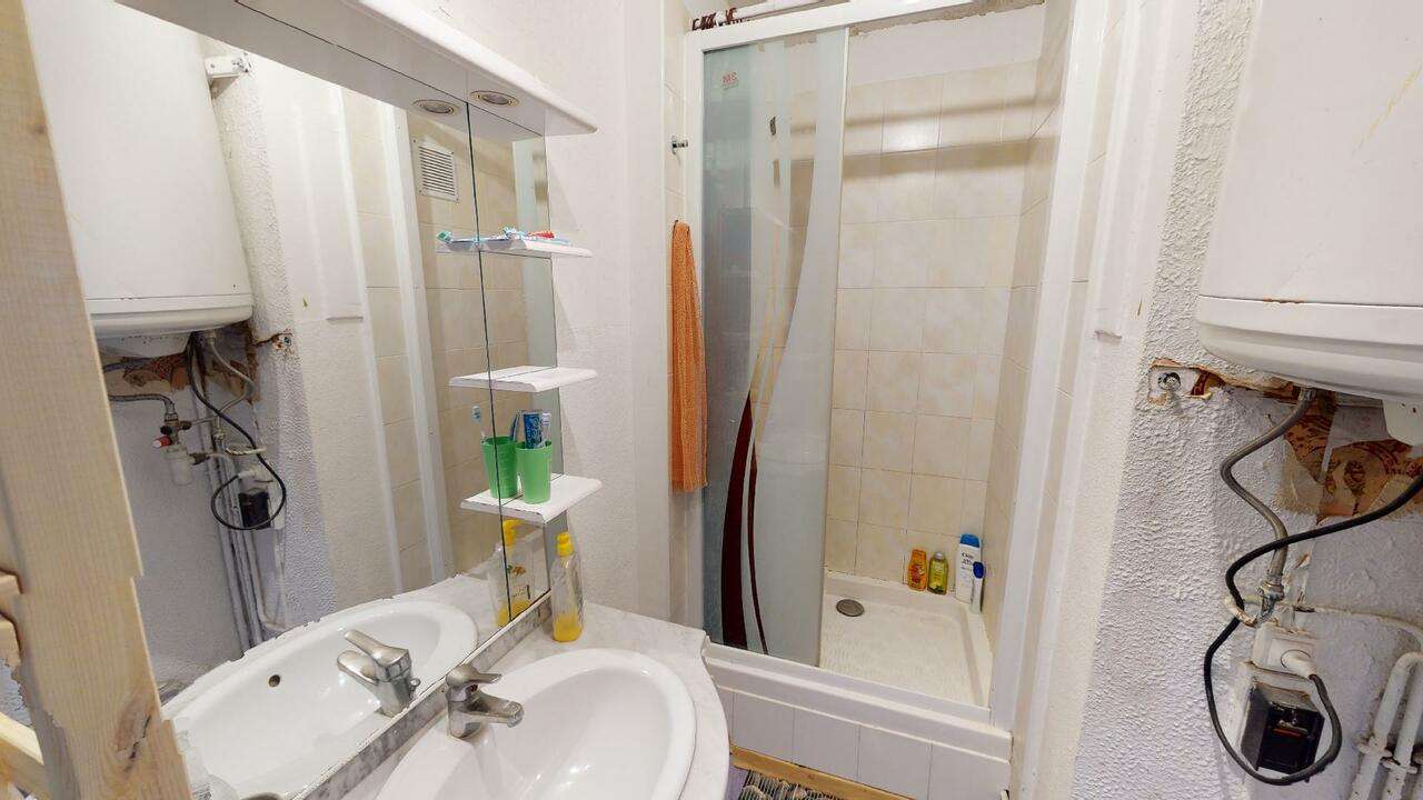 Une salle de bain avec douche et meuble vasque ainsi que des WC séparés viennent compléter ce logement.