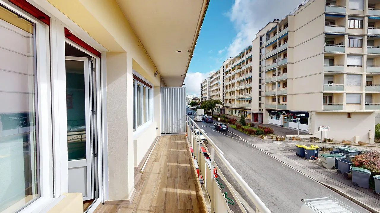 L’appartement bénéficie d’un balcon filant, accessible depuis les chambres, qui apporte luminosité et un espace extérieur agréable.