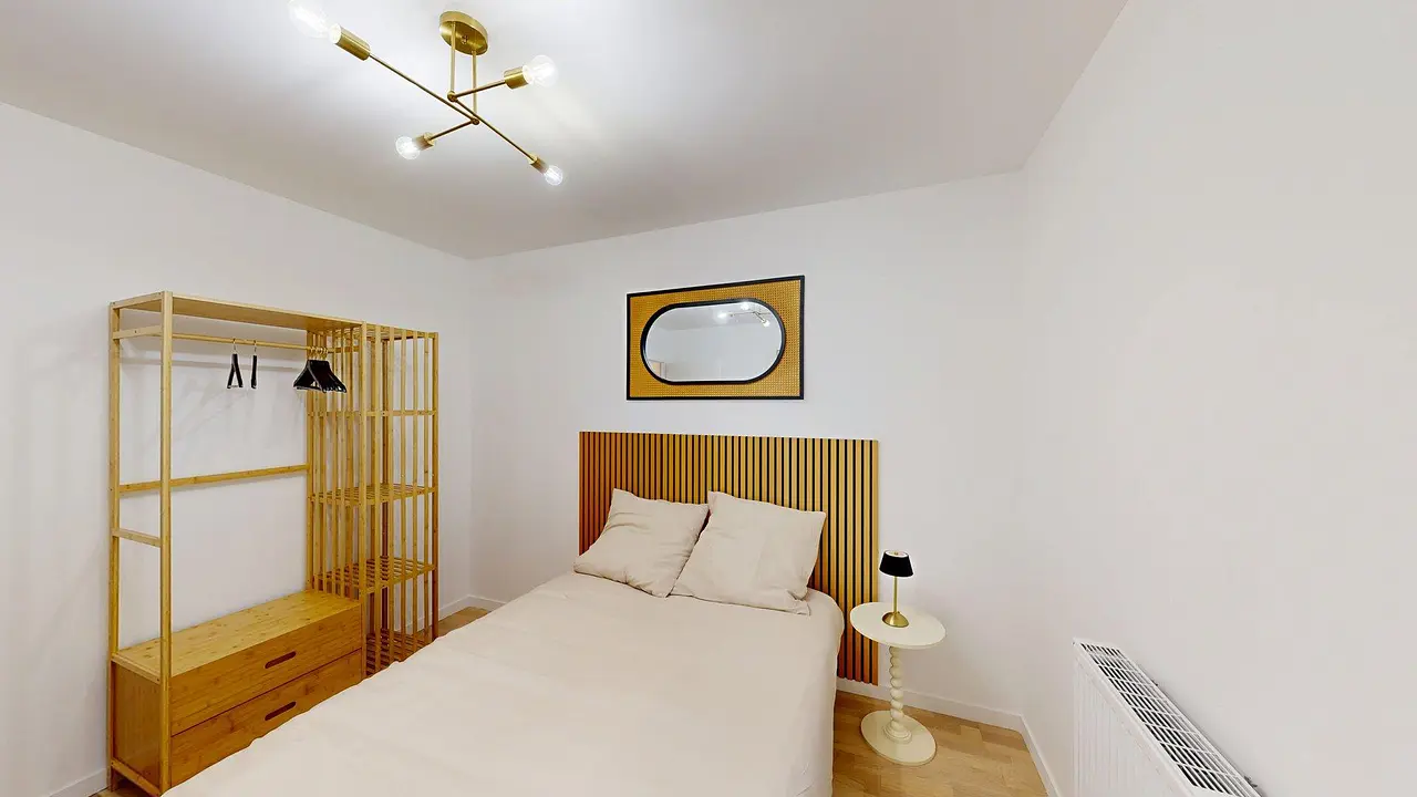 Le logement se compose de quatre chambres spacieuses, toutes meublées avec soin. L’une d’entre elles bénéficie du privilège d'une salle de bain privative, offrant une indépendance totale. Les trois autres chambres se partagent une seconde salle de bain moderne et fonctionnelle. Chaque pièce est optimisée pour le repos et la productivité, intégrant un lit confortable, un espace bureau dédié et un dressing généreux. Situé à proximité immédiate des transports et des commerces de Villejuif, cet appartement est le lieu idéal pour ceux qui recherchent le prestige du neuf sans aucun compromis.