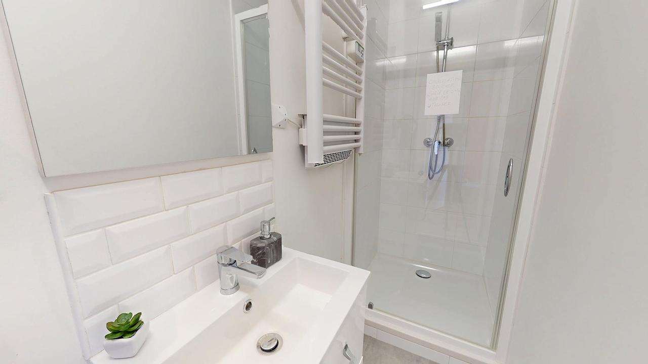 L'appartement dispose de deux salles d'eau, la première avec une cabine de douche, un meuble vasque avec un miroir ainsi qu'un sèche-serviettes. La seconde dispose d'une grande douche, d'un meuble vasque avec un miroir, d'un WC ainsi que d'un lave-linge et d'un sèche-lève. Des toilettes supplémentaires sont séparées.