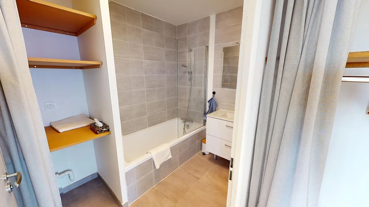 Les salles de bains sont composées d'un sèche serviette, d'une vasque avec rangements, d'une
