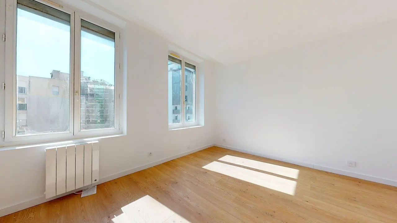 L’appartement s’organise autour d’un grand séjour baigné de lumière naturelle grâce à deux larges fenêtres. Ce vaste espace à vivre bénéficie d’un parquet clair élégant et de murs blancs immaculés, créant une atmosphère saine et accueillante, prête à être aménagée selon vos goûts.-