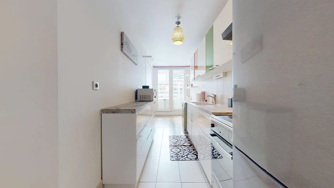 🏠 Les espaces communsCuisine équipée : four, micro-ondes, plaques de cuisson, hotte, évier, réfrigérateur avec compartiment congélateur, lave-vaisselle, nombreux rangements et ustensiles. Elle donne accès direct au balcon pour profiter des beaux jours, sans vis-à-vis.