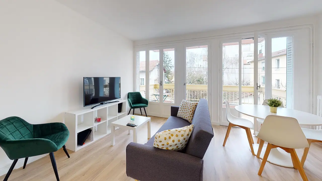 Grande et superbe colocation de 81 m² avec balcon entièrement rénovée et meublée au nord du quartier de Moulin à Vent, dans le 8ème arrondissement de Lyon.