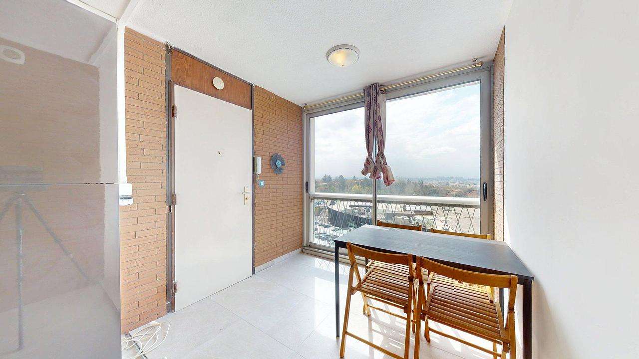 Le logement s'ouvre sur une salle à manger lumineuse, grâce à une grande baie vitrée offrant une vue dégagée. La pièce est équipée d'une table à manger pouvant accueillir 4 personnes.