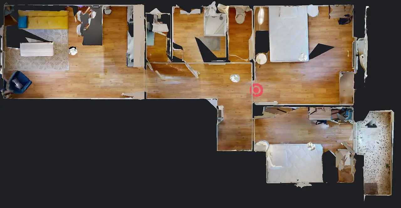 Le salon est meublé d'un canapé, d'une commode, d'un fauteuil et comporte une télévision. La cuisine est meublée et équipé. Elle comporte un four, un grille-pain, une hotte, un lave-vaisselle, un micro-ondes et une plaque de cuisson. Les chambres disposent chacune d'un lit double, d'un bureau et d'une armoire de rangement. L'une d'entre a un balcon. La salle de bains est meublée d'une baignoire, d'une douche, d'un miroir et d'une étagère.
