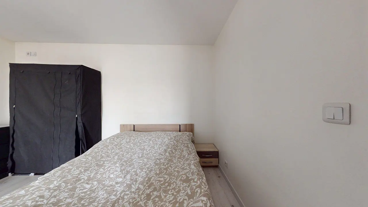 La chambre, spacieuse et agréable, dispose d’un lit double, d’une table de chevet et d’une armoire, offrant tout le confort nécessaire.