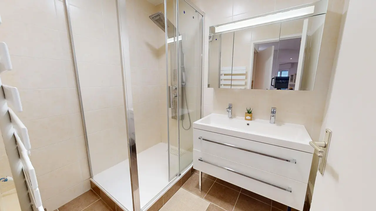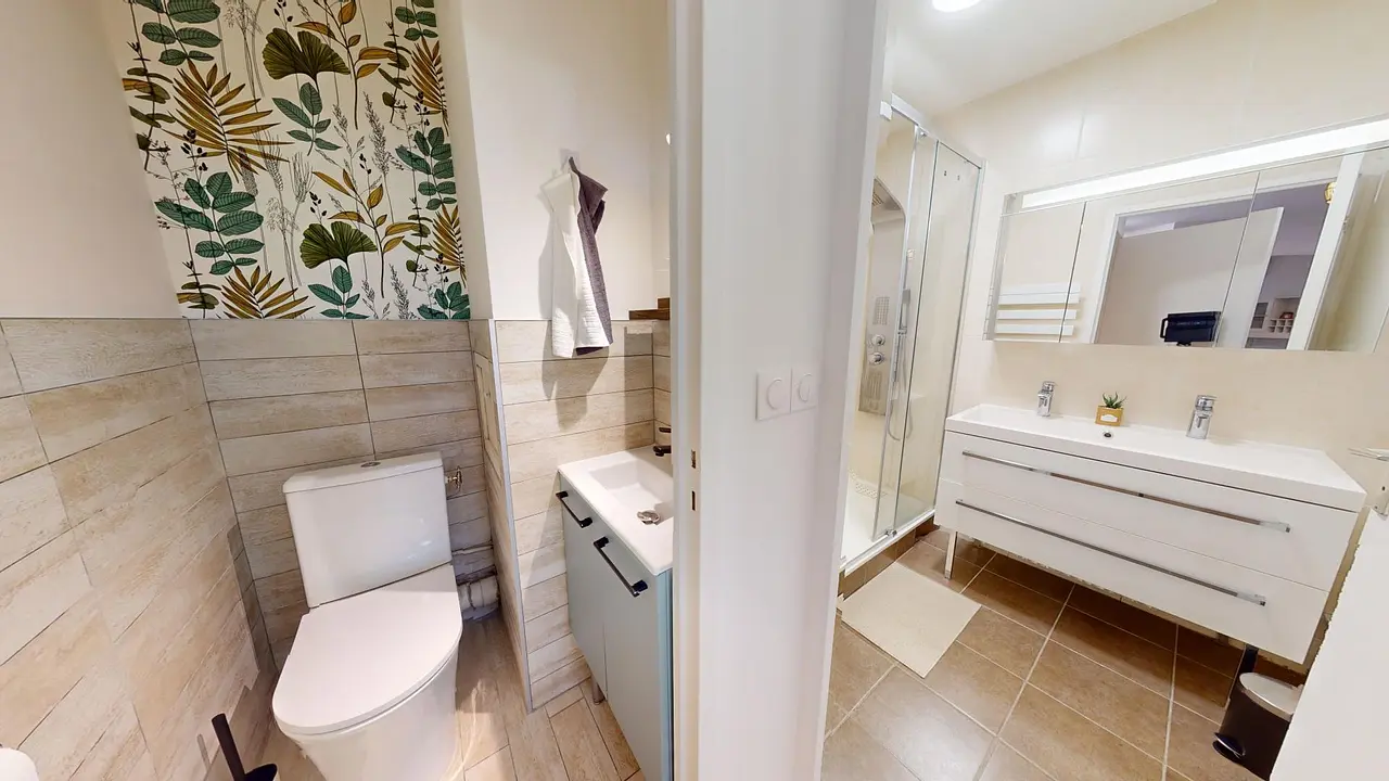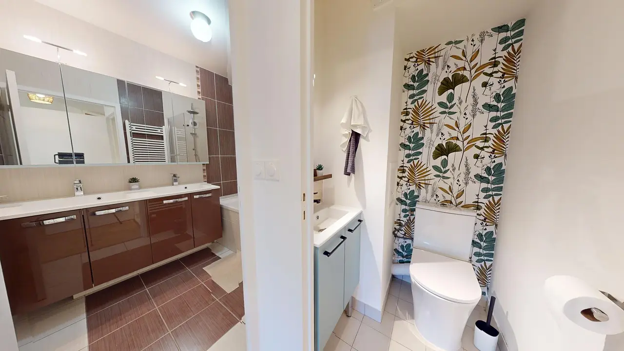 L'appartement dispose d'une salle de bain et d'une salle d'eau ainsi que de deux toilettes séparées.
