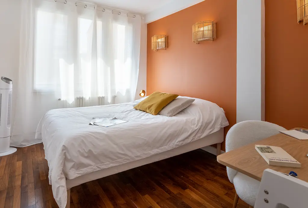 La chambre 4, adjacente à la salle de bain, offre le confort d'un lit deux places ainsi que de rangements