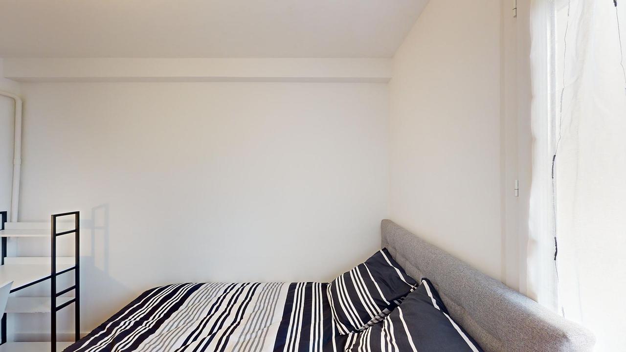 Cette chambre dispose d'un lit double, d'une armoire, d'une fenêtre ainsi que d'un bureau.