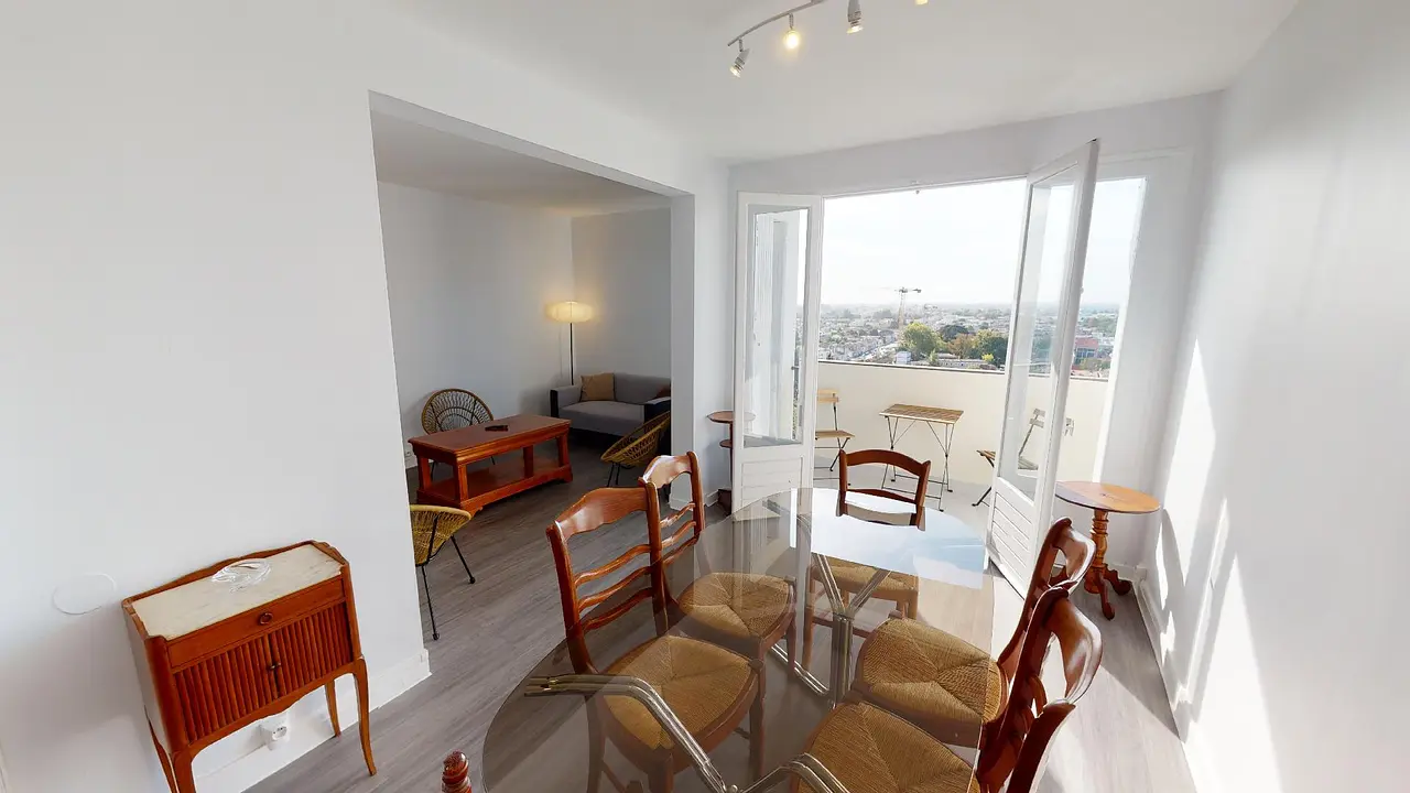 La pièce de vie ainsi que la cuisine offre des accès directs à 2 balcons de part et d’autre de l’appartement.