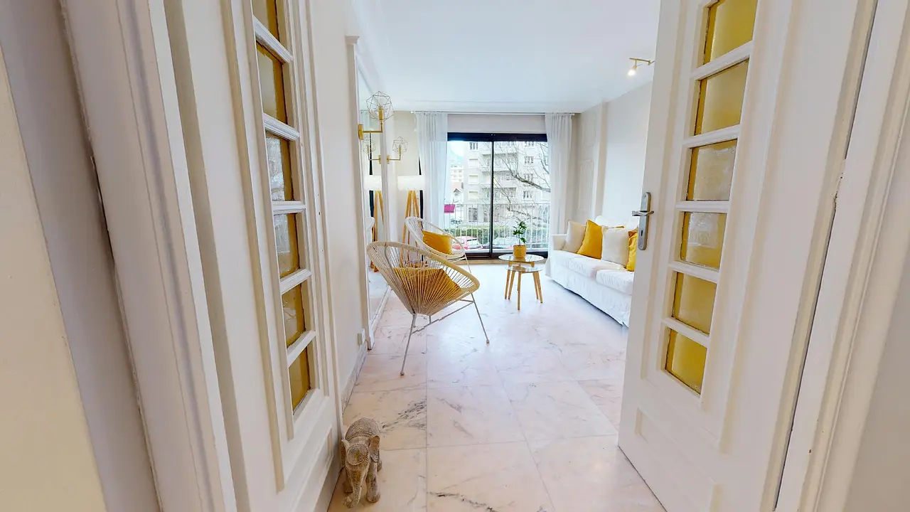 Un balcon encercle la quasi-totalité de l'appartement, avec un accès dans toutes les pièces à vivre, chambres comprises.