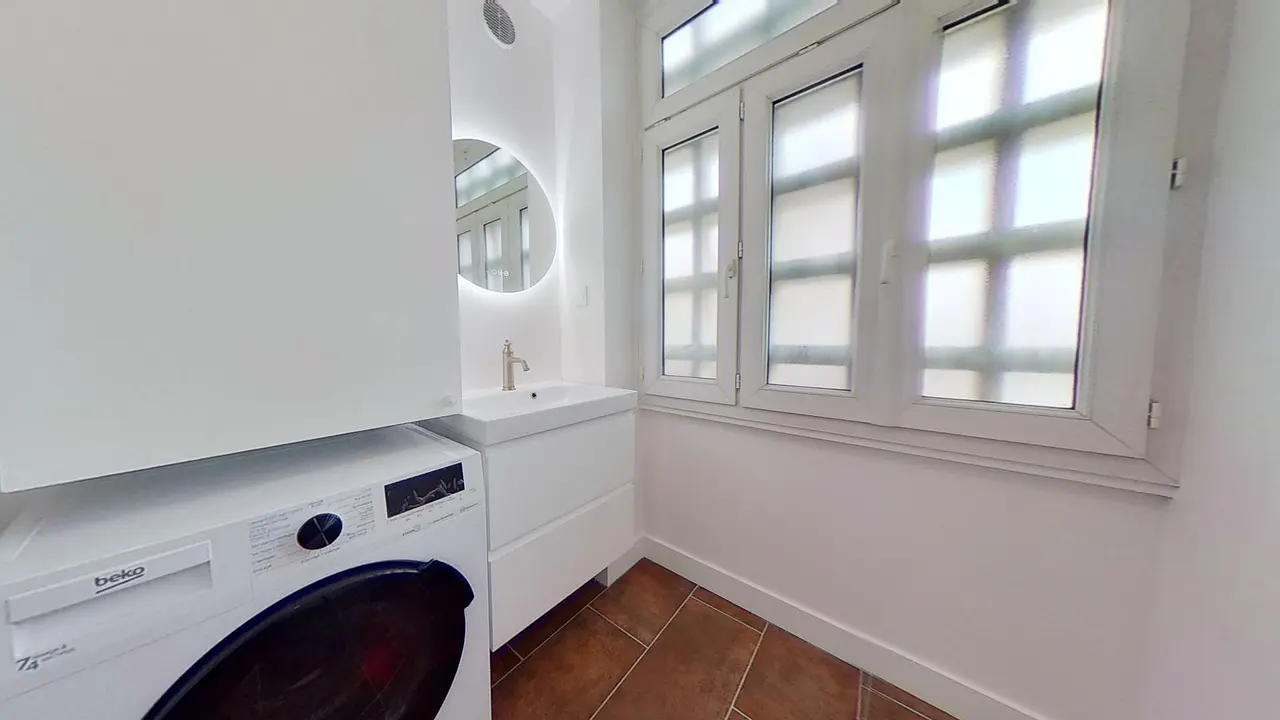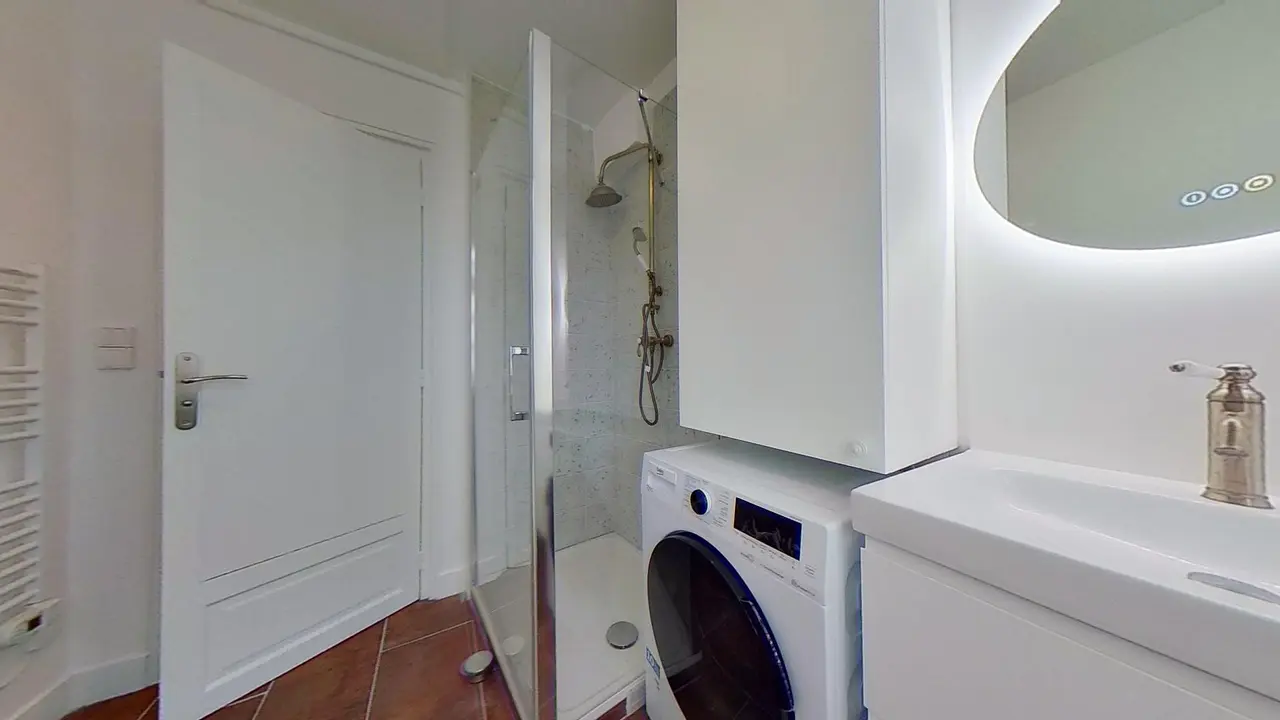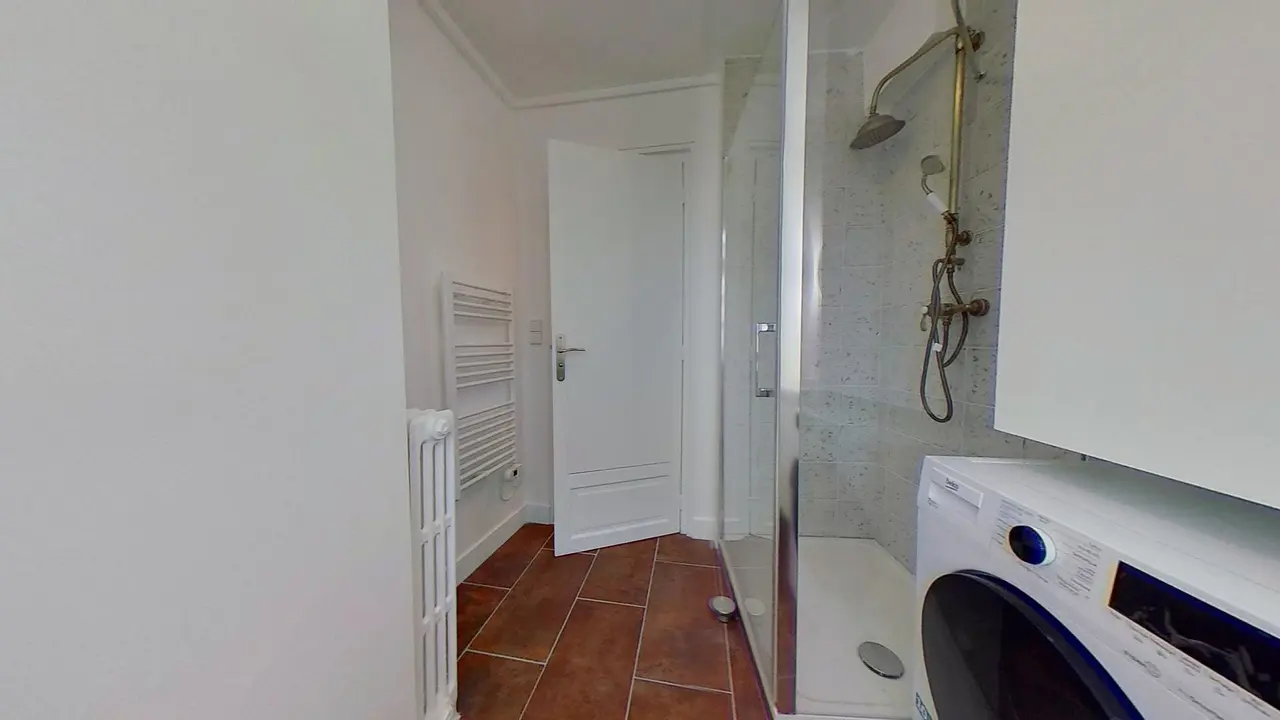 La salle d'eau est quant à elle équipée d'une douche et d'un lave-linge. Deux autres chambres sont présentes dans cette colocation.