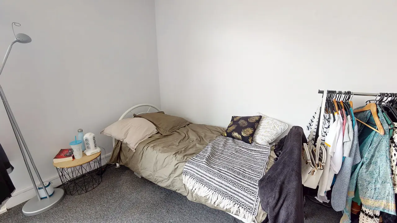 Chaque chambre est meublée avec un lit simple, un bureau avec chaise, des rangements (placard et commode) ainsi qu'une table de chevet.
