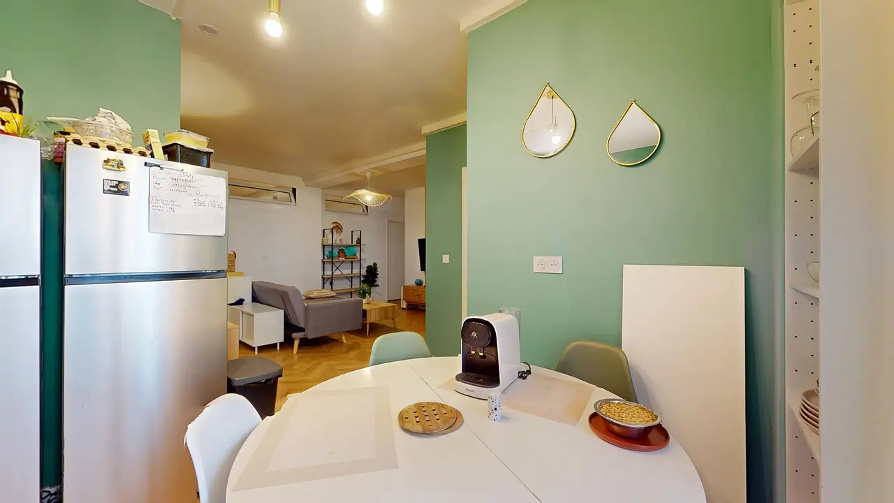 Située au premier étage, cette colocation a été pensée pour offrir un cadre de vie agréable, fonctionnel et chaleureux, idéale pour des étudiants/jeunes actifs. L’appartement allie intimité et convivialité, dans une décoration soignée et contemporaine.