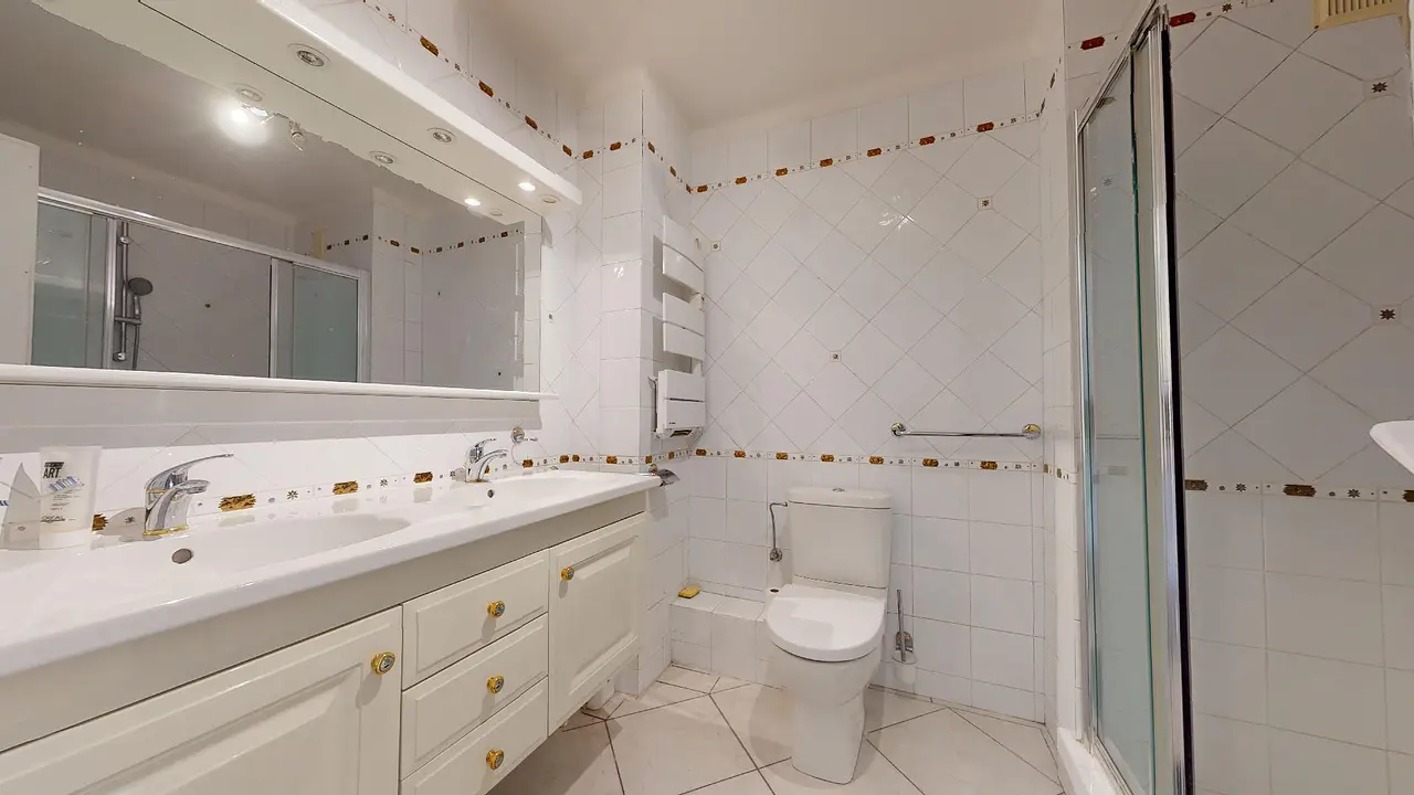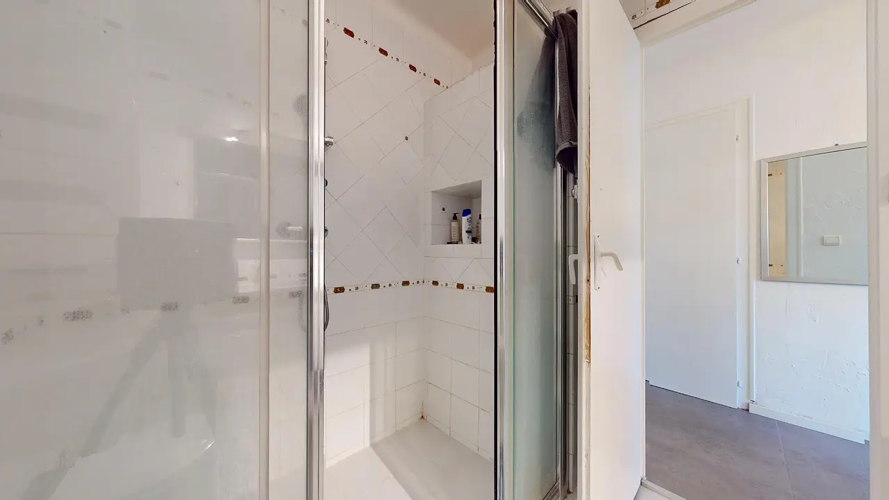 Cet appartement de 5 pièces est agencé comme suit : un salon, trois chambres, une cuisine équipée (dont lave-vaisselle) et une salle de bains avec douche.