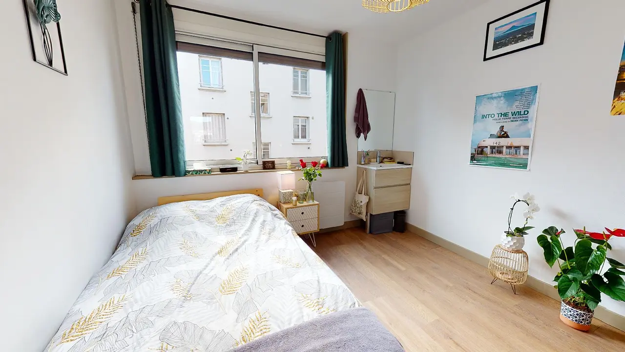 Belle colocation meublée à Clermont-Ferrand. D’une superficie de 81 m² pour 4 chambres, le T5 est situé au 2ᵉ étage de l'immeuble au 43 rue Guynemer, dans le quartier de La Pradelle.