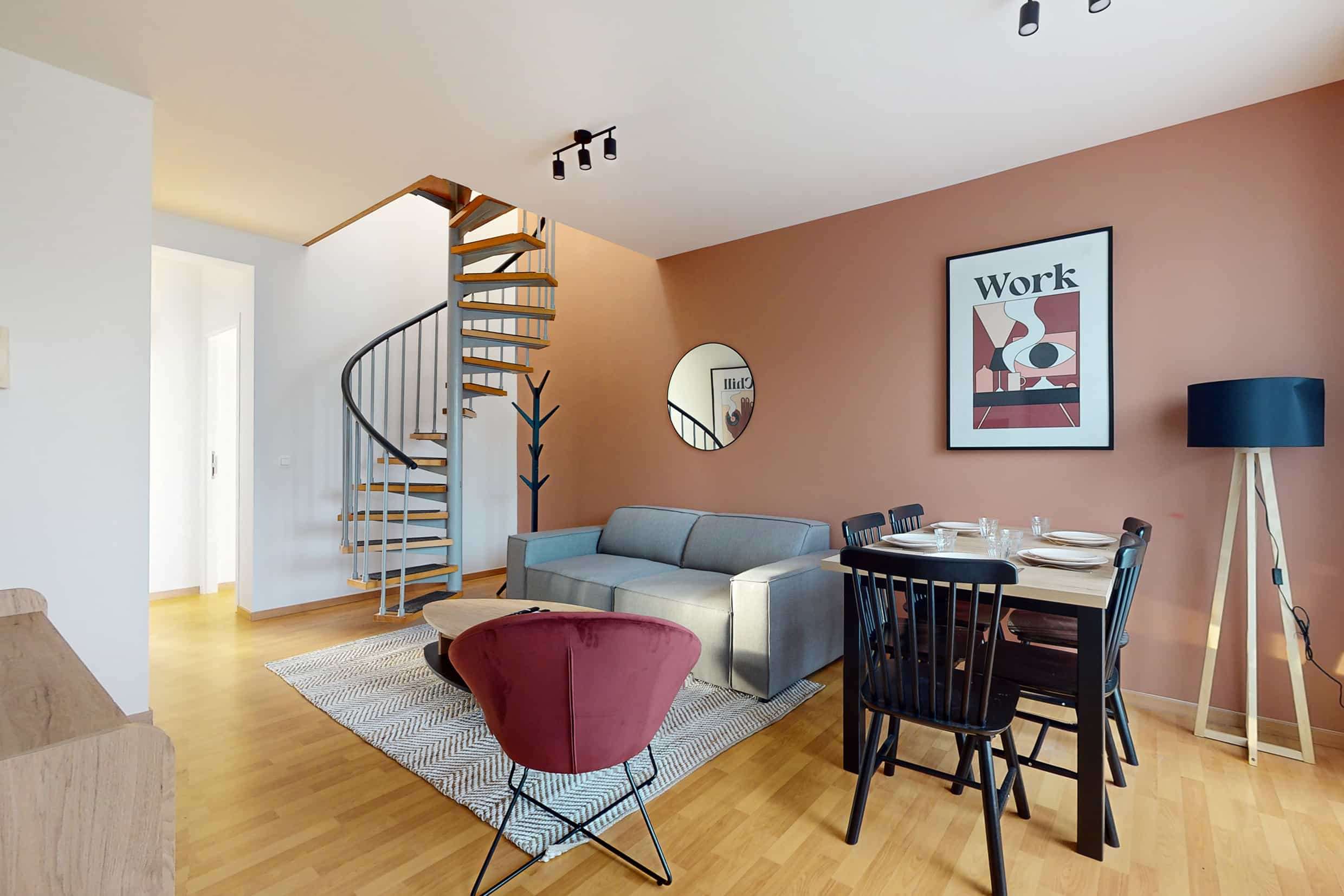 Welcome to Bruxelles Merten, a friendly and well-equipped duplex apartment perfect for shared living. The common area includes a cozy living room and a fully equipped kitchen with everything you need to cook and dine, including a dishwasher, oven, and fridge. Step outside to enjoy the terrace. The apartment also offers high-speed internet and technical support for a comfortable stay.
