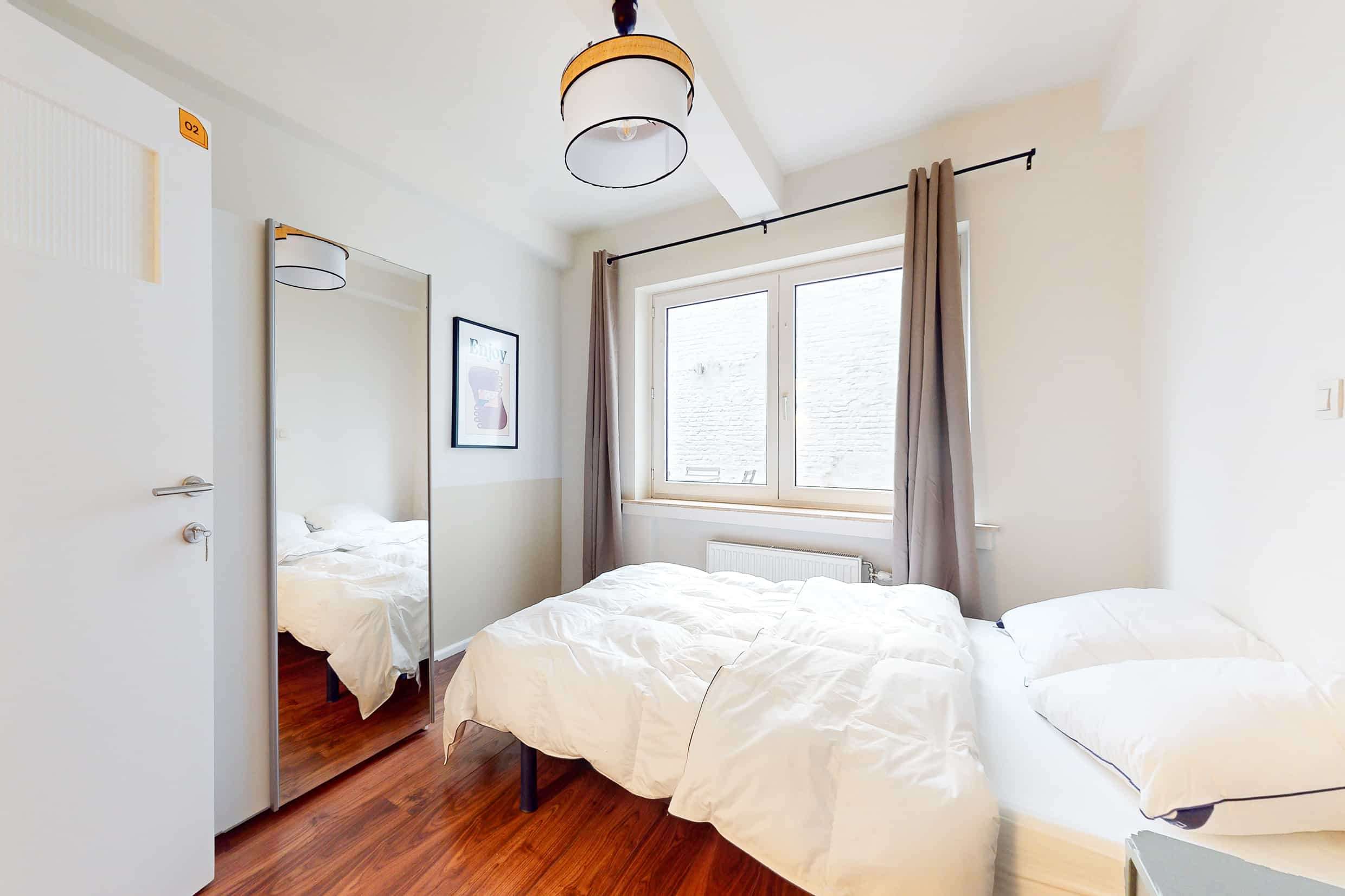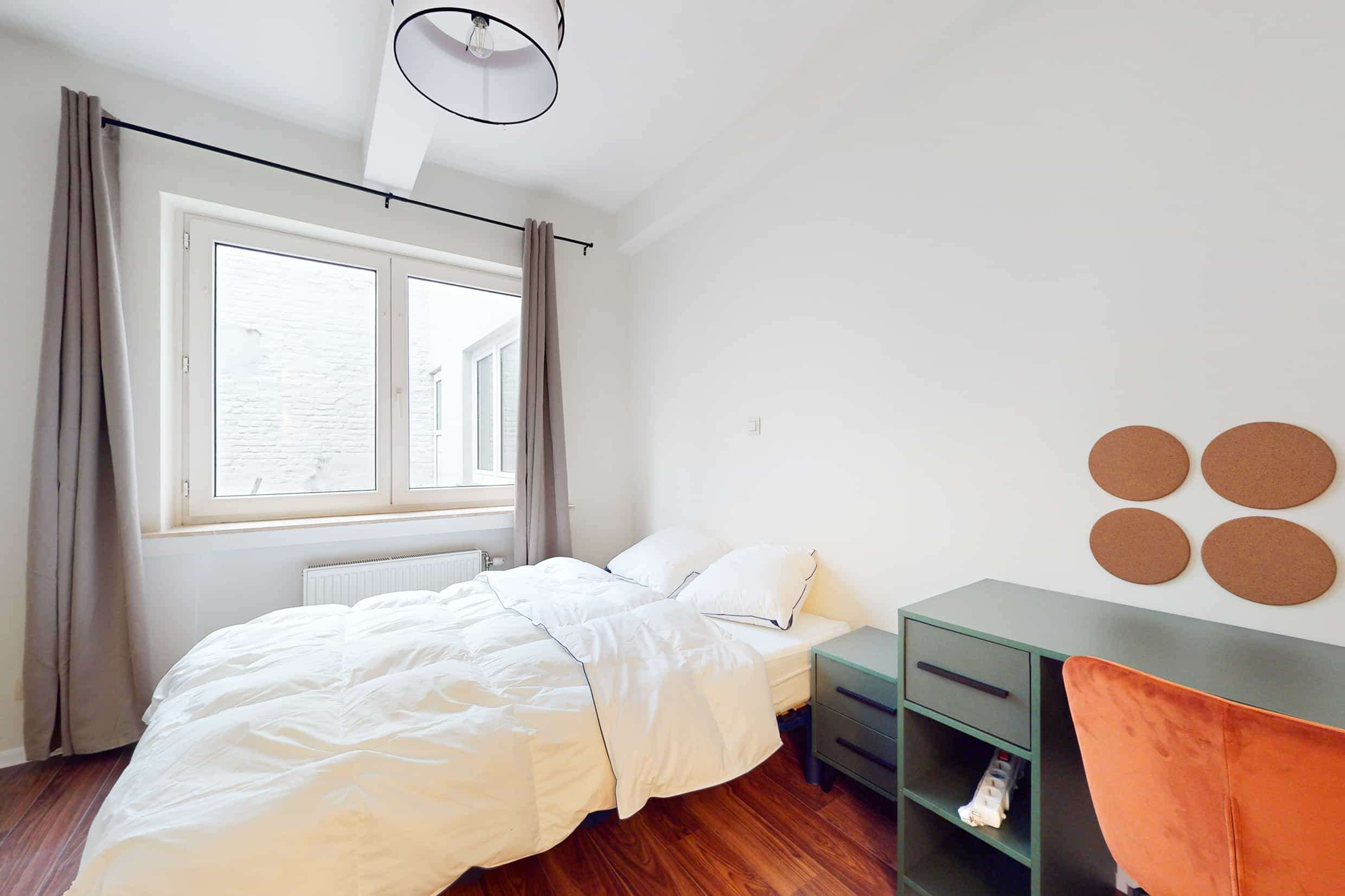 Welcome to Bruxelles Timmermans, a friendly shared apartment that's perfect for those looking for a comfortable and convenient living space. This home offers a fully equipped kitchen, complete with modern appliances like a microwave, oven, dishwasher, and more. The living area is cozy, with high-speed internet and a dining area where you can enjoy meals with your housemates. The large 52m2 terrace is a great spot to relax and catch some fresh air.