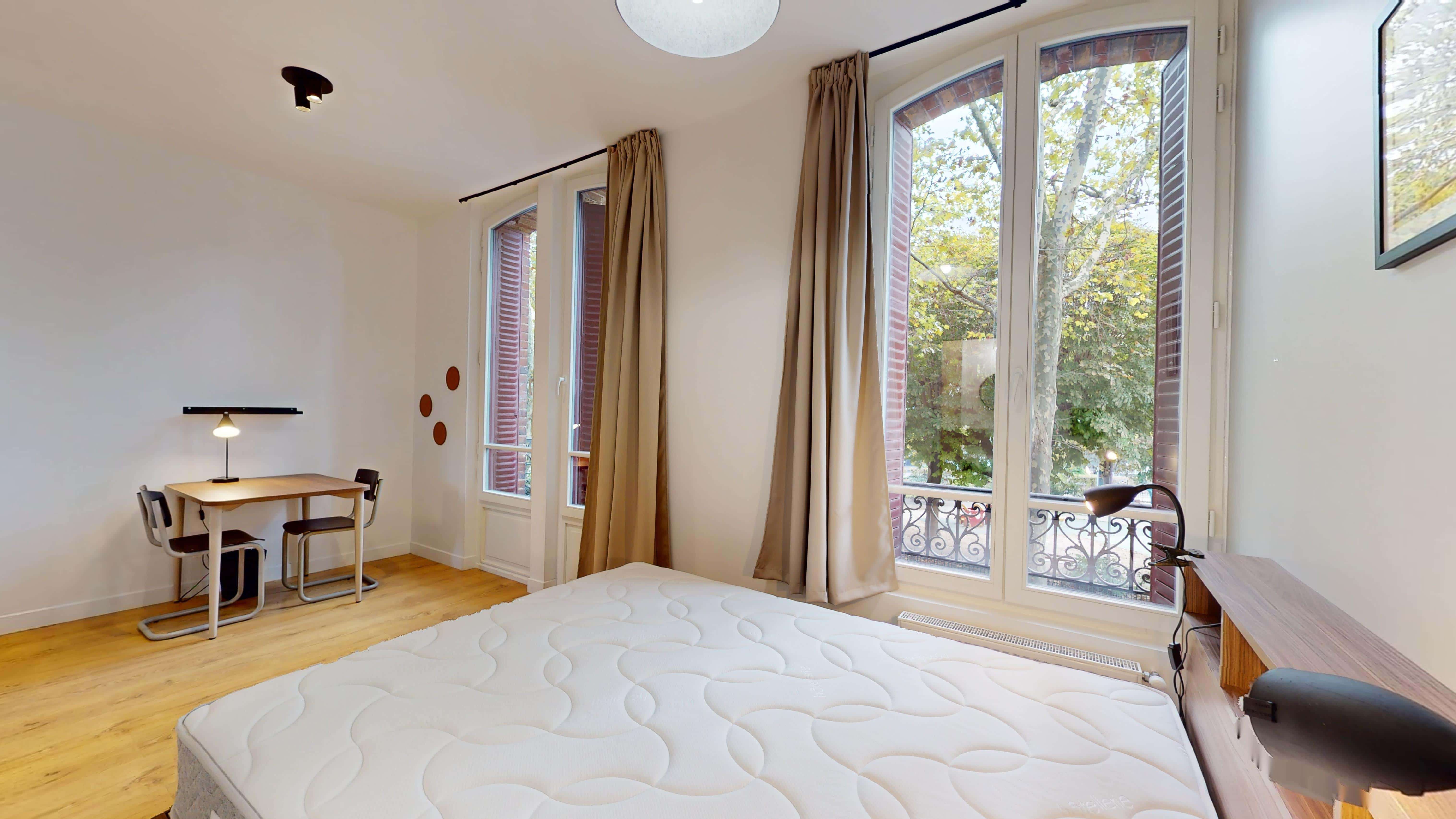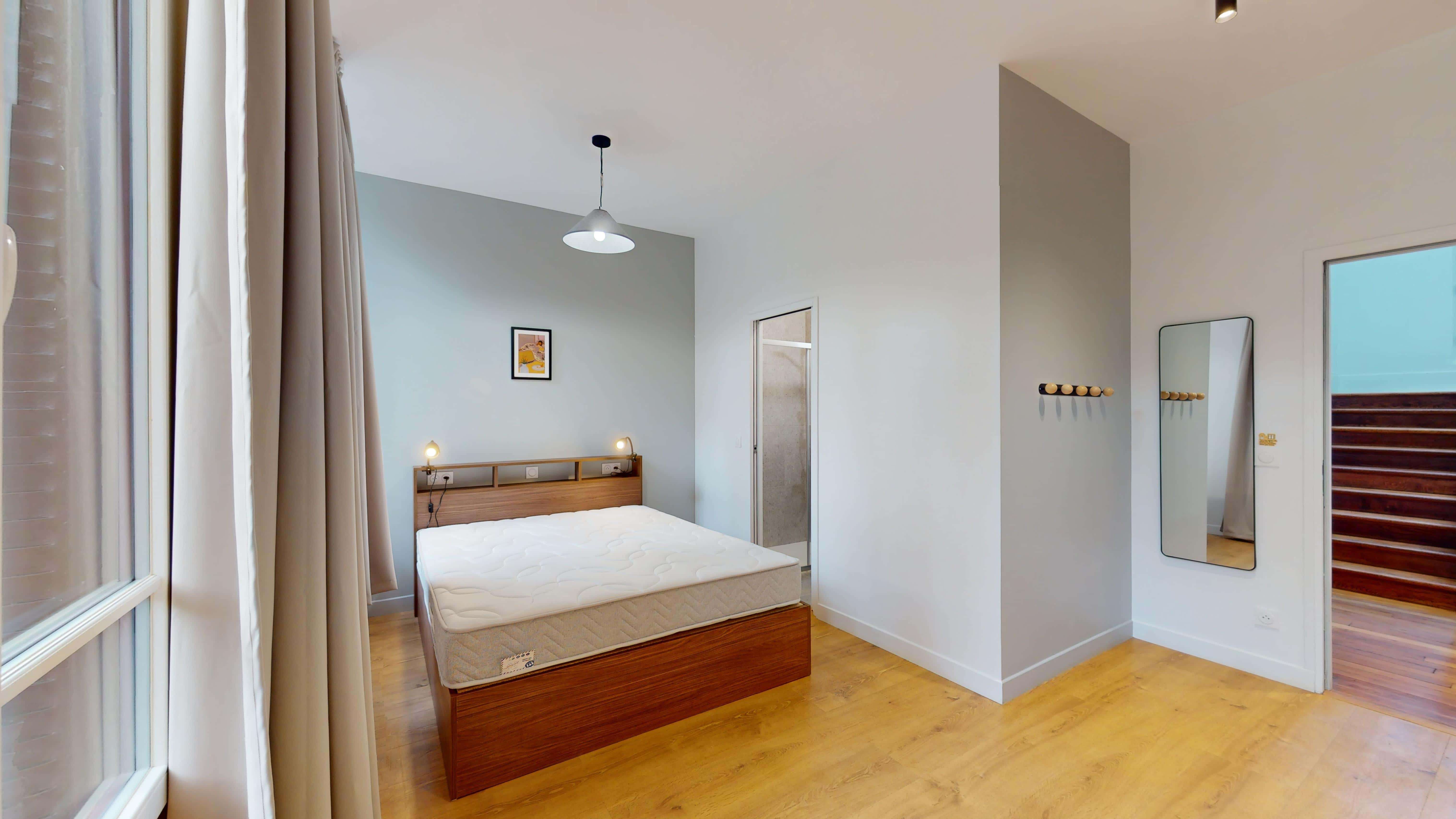La chambre "Room for two people - 5" est un cocon douillet de 19m² situé au rez-de-chaussée, parfait pour deux personnes. Elle dispose d'une salle de bain privée avec douche, pour votre confort et intimité. La chambre est entièrement meublée avec un lit double doté d'un rangement intégré, une armoire spacieuse, un bureau et une chaise pour vos moments de travail ou de lecture, ainsi que tous les petits détails qui font la différence : miroir, lampe de bureau, étagère murale et connexion internet haut débit.