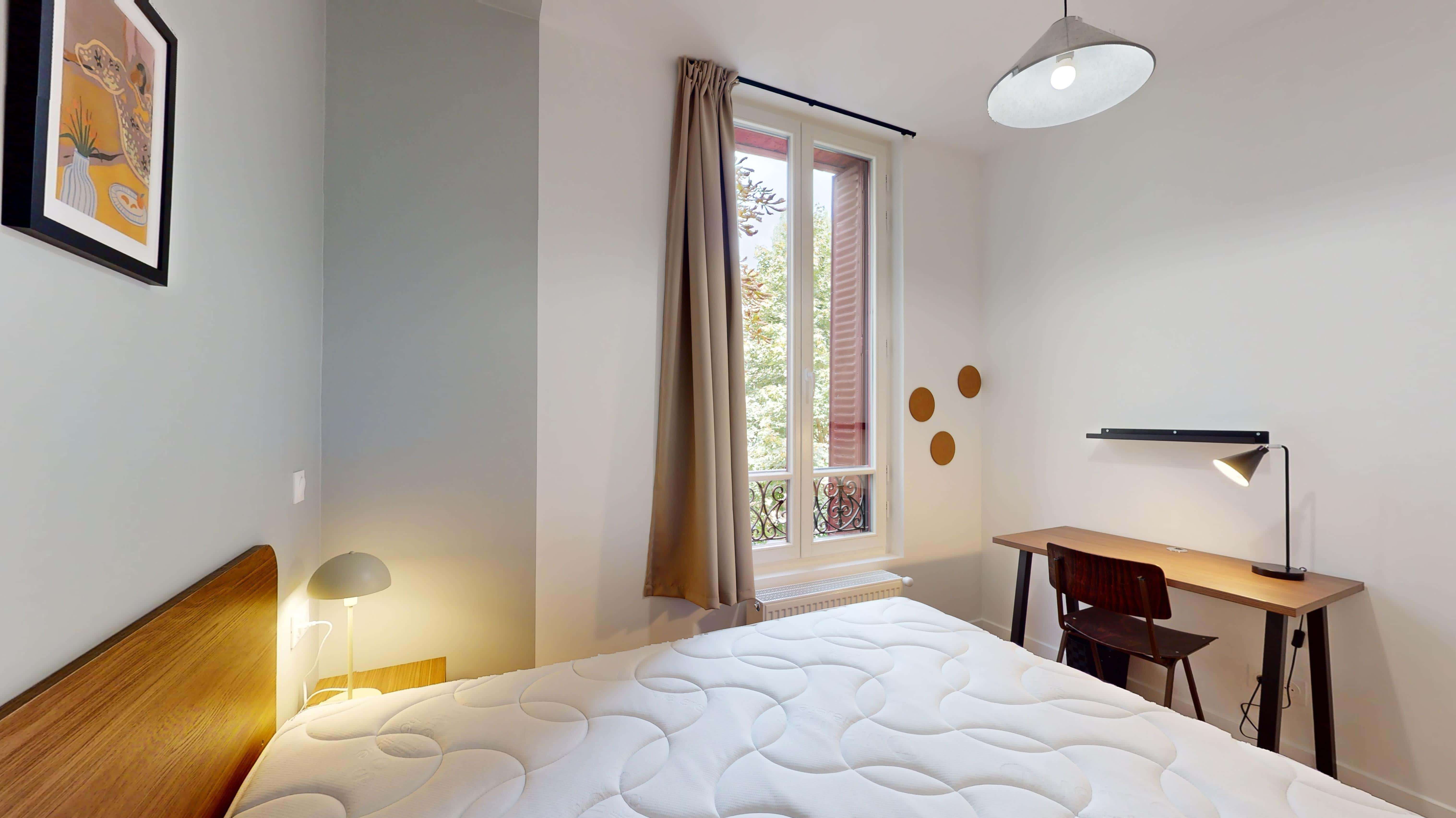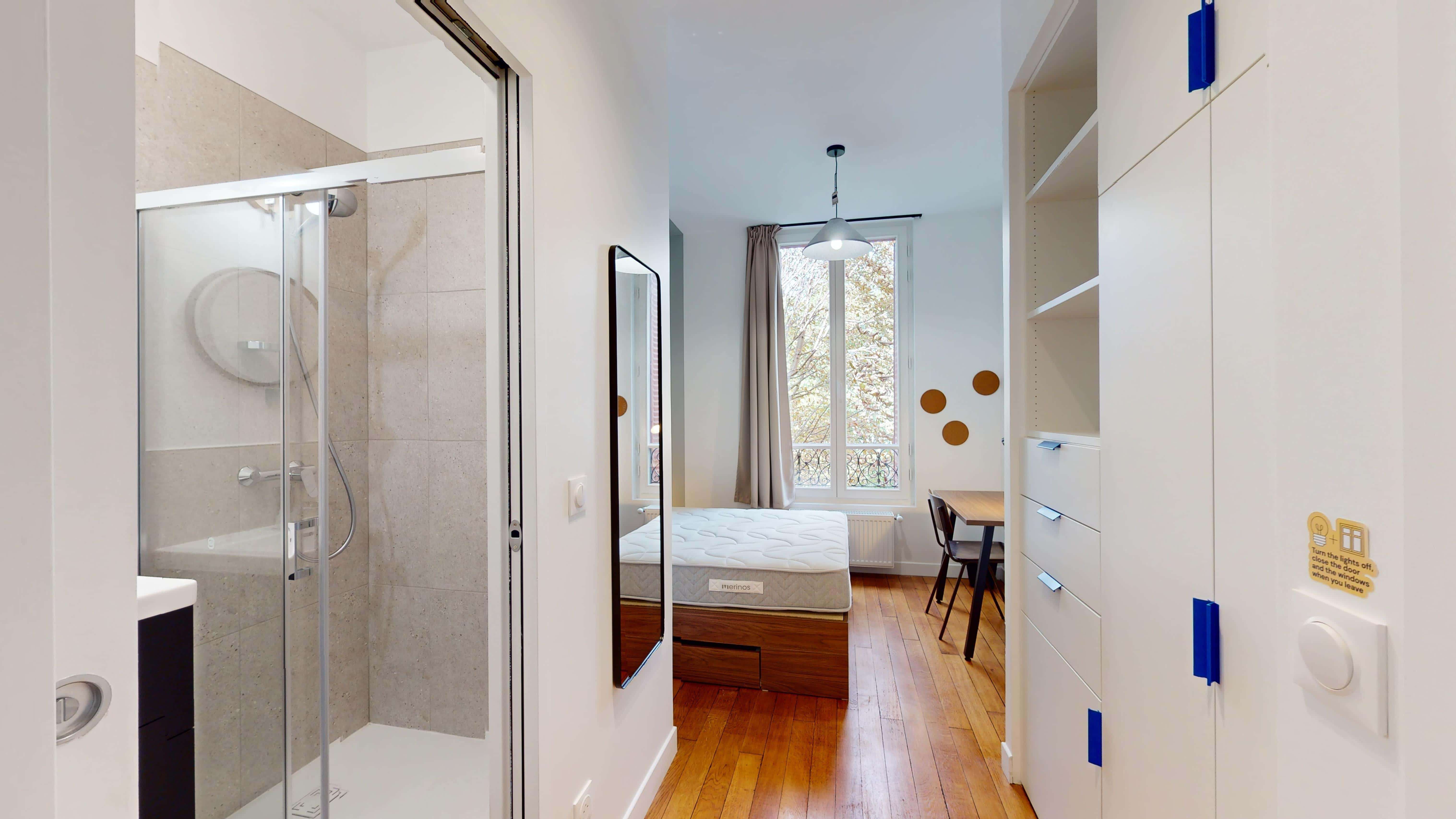 La chambre numéro 7 est un cocon parfait pour une personne. Située au premier étage, elle dispose d'une salle de bain privée avec douche. Vous y trouverez un lit double confortable avec des rangements intégrés, une armoire spacieuse, un bureau et une chaise pour travailler ou étudier, ainsi que tous les petits détails qui font la différence : lampes de chevet, rideaux, radiateur pour rester au chaud et connexion internet à haut débit.