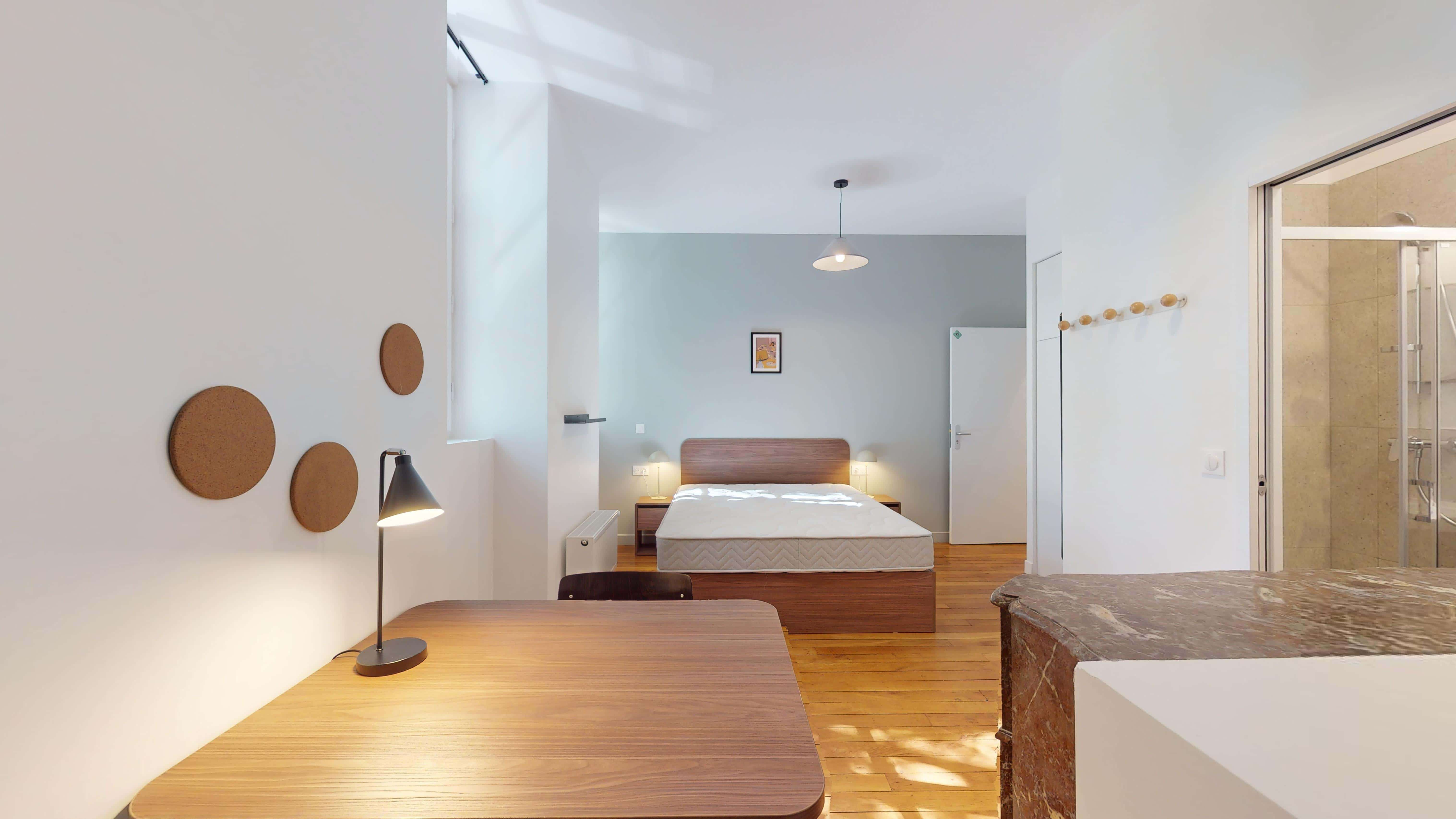 Bienvenue à la Résidence Carnot, un espace de coliving convivial et moderne de 350m2 conçu pour faciliter la vie en communauté. Avec ses quatorze unités privatives, cette résidence offre un salon commun pour se détendre et échanger, ainsi qu'une buanderie équipée pour prendre soin de votre linge. La cuisine commune est le cœur de la maison, où vous pouvez préparer vos repas avec des équipements complets comme un four, un micro-ondes et un lave-vaisselle.