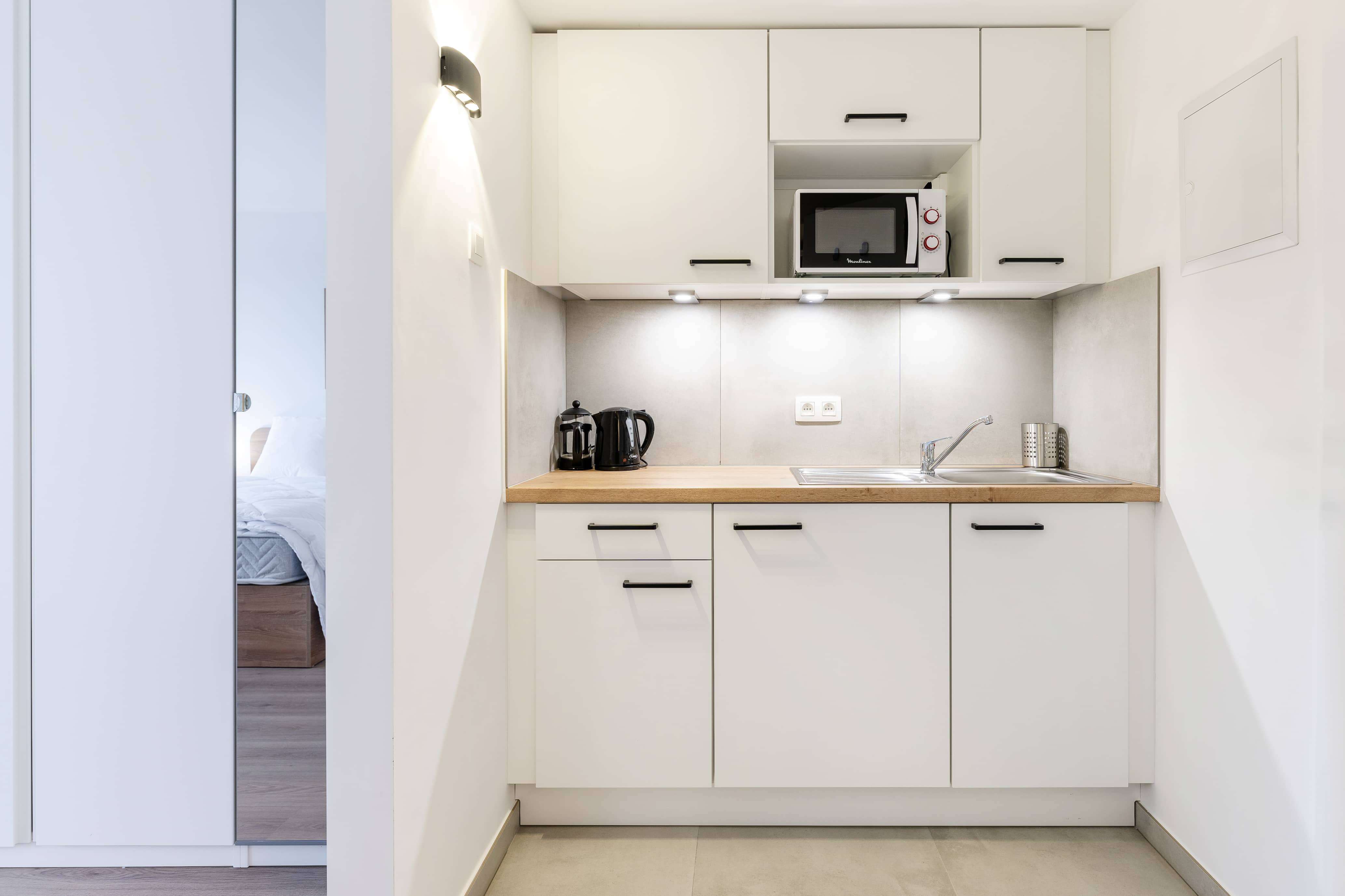 Le Studio for two people - 005, situé au rez-de-chaussée, est parfait pour deux colocataires. Avec une superficie de 25m2, il comprend une salle de bain privée, une kitchenette équipée et un espace nuit avec un lit double confortable. Vous y trouverez également tout le nécessaire pour étudier ou travailler dans les meilleures conditions : un bureau, une chaise et une connexion internet haut débit.