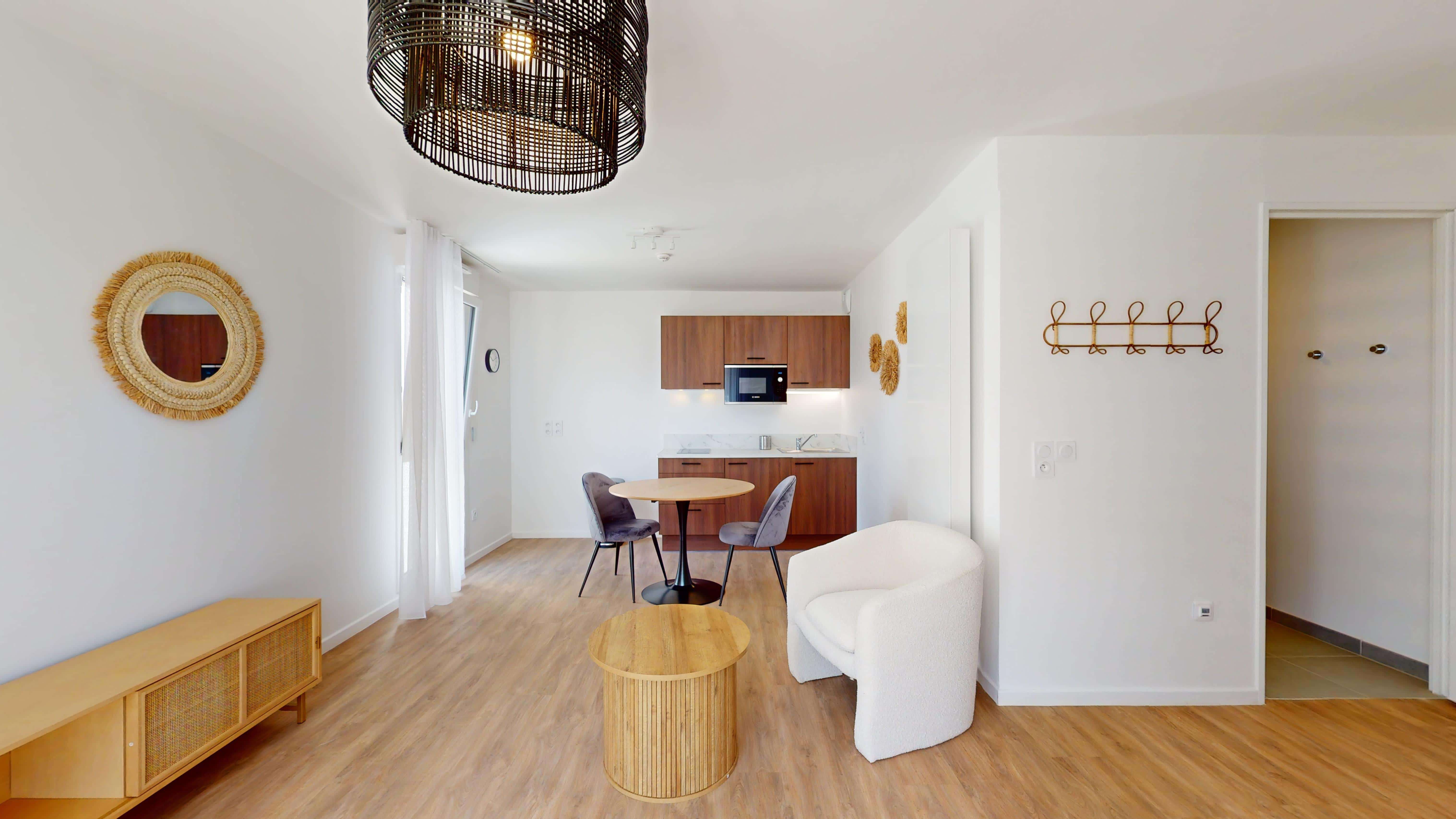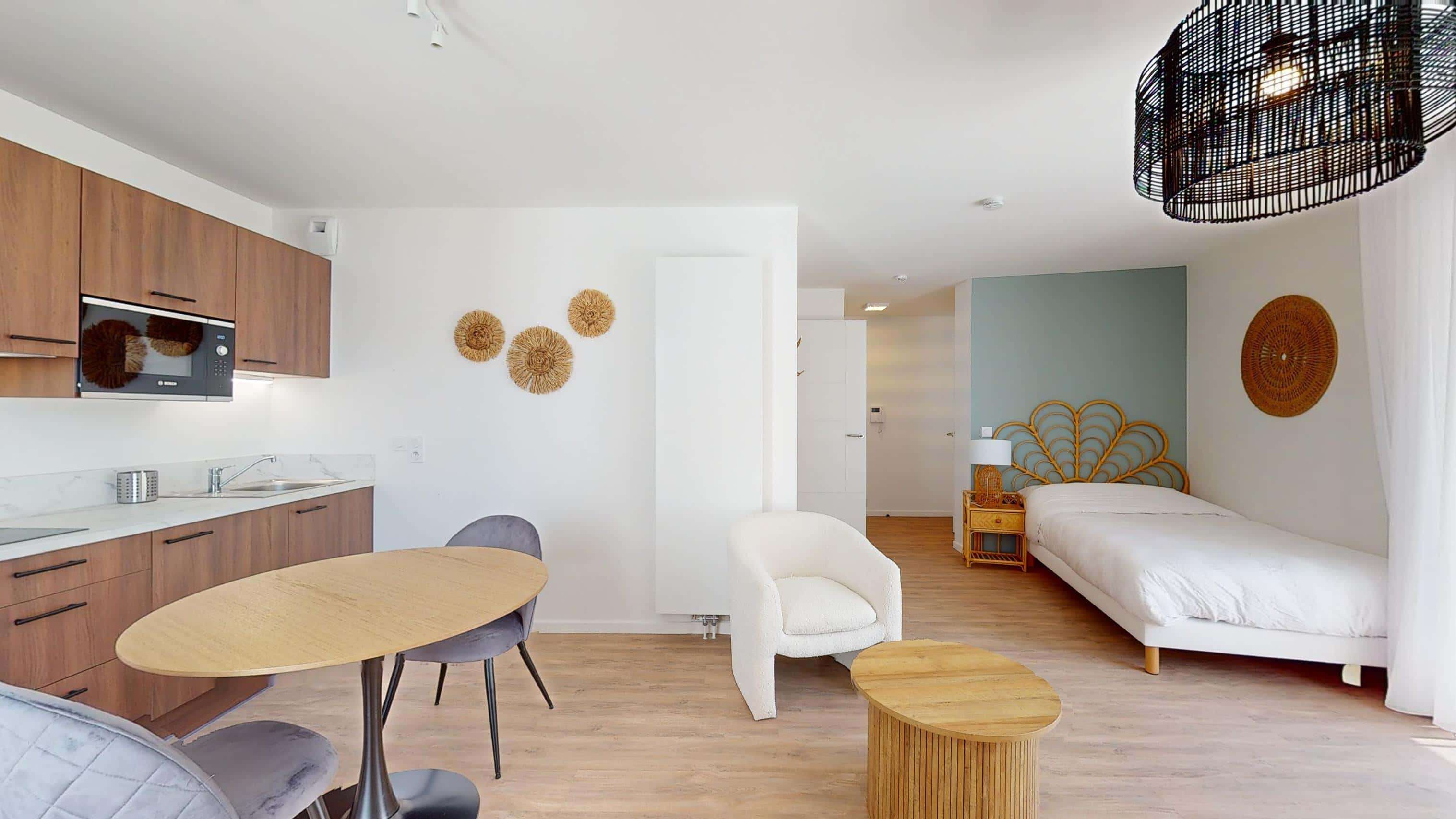 Découvrez votre futur chez-vous : un appartement privé conçu spécialement pour une personne. Avec ses 45 mètres carrés bien agencés, cet espace comprend une salle de bain privée avec douche, lavabo et toilettes, ainsi qu'une petite cuisine où vous pourrez préparer vos repas. L'appartement est meublé d'un lit double confortable, d'une armoire spacieuse pour vos affaires, d'une chaise et de tout ce dont vous avez besoin au quotidien, comme une machine à café pour bien démarrer la journée et un lave-vaisselle pour vous faciliter la vie.