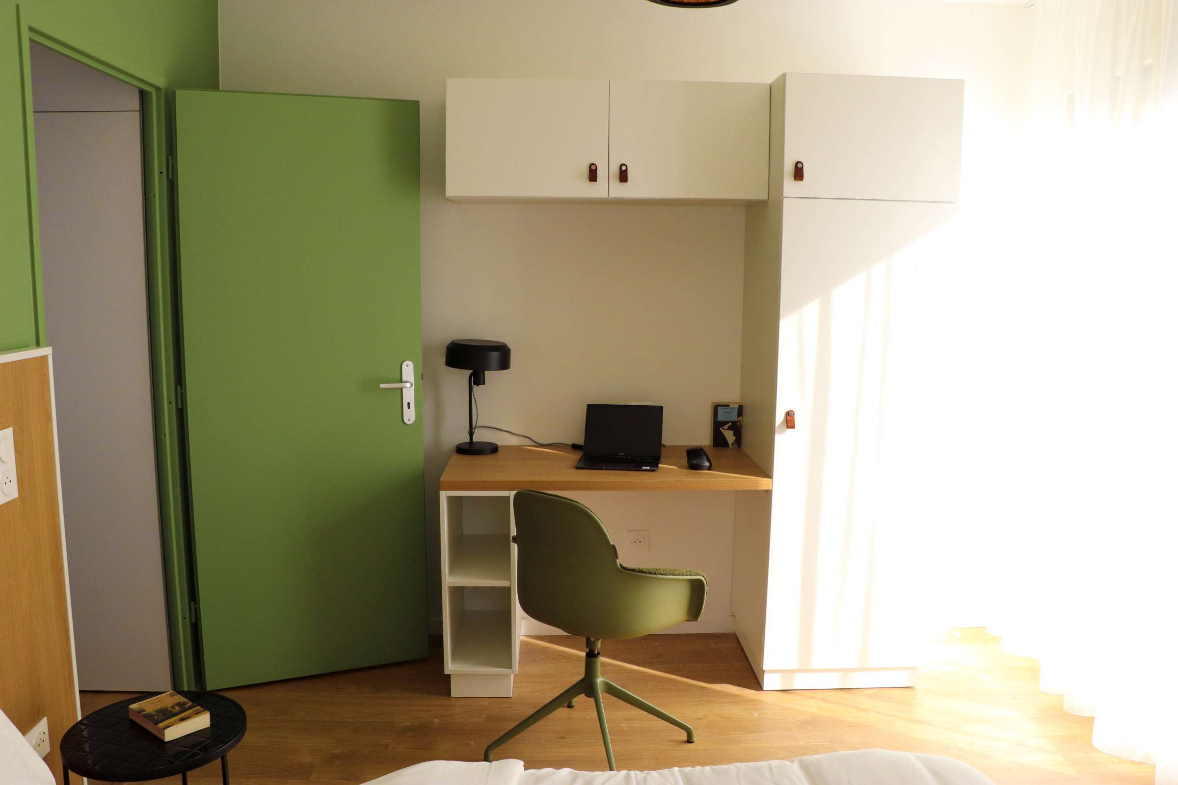 Découvrez votre futur chez-vous à la résidence Ivrywood, un espace conçu pour la vie moderne et le confort. Cet appartement de 41 m² est parfait pour deux personnes, avec une chambre séparée dotée d'un lit double confortable et d'une armoire spacieuse pour ranger vos affaires. La salle de bain privée est équipée d'une douche, d'un lavabo et de toilettes. La cuisine ouverte sur le salon est prête à l'emploi avec un évier, deux plaques de cuisson, un micro-ondes, un petit réfrigérateur et même un lave-vaisselle pour faciliter votre quotidien. Le salon est accueillant avec son canapé-lit, sa télévision et une grande table avec des chaises pour vos repas ou pour travailler. En plus, vous aurez accès à une buanderie commune, une salle de sport pour rester en forme et une terrasse pour profiter des beaux jours.