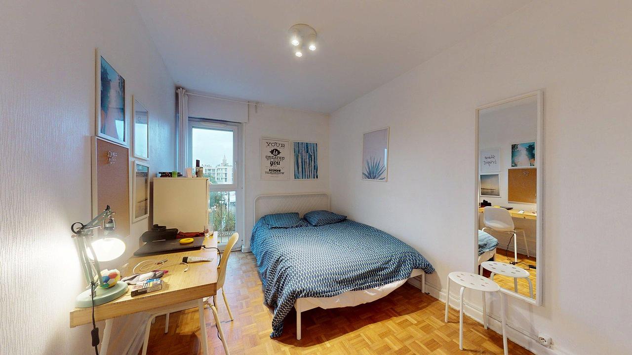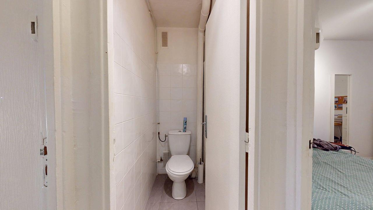 La colocation comprend quatre chambres meublées, permettant à chacun de profiter d’un espace personnel confortable. L’appartement dispose également d’une salle de bain équipée d’une baignoire, d’un meuble vasque avec rangements et d’une fenêtre apportant un éclairage naturel. Une seconde salle d’eau avec douche à l’italienne, ainsi que des toilettes séparées, complètent ce bien.