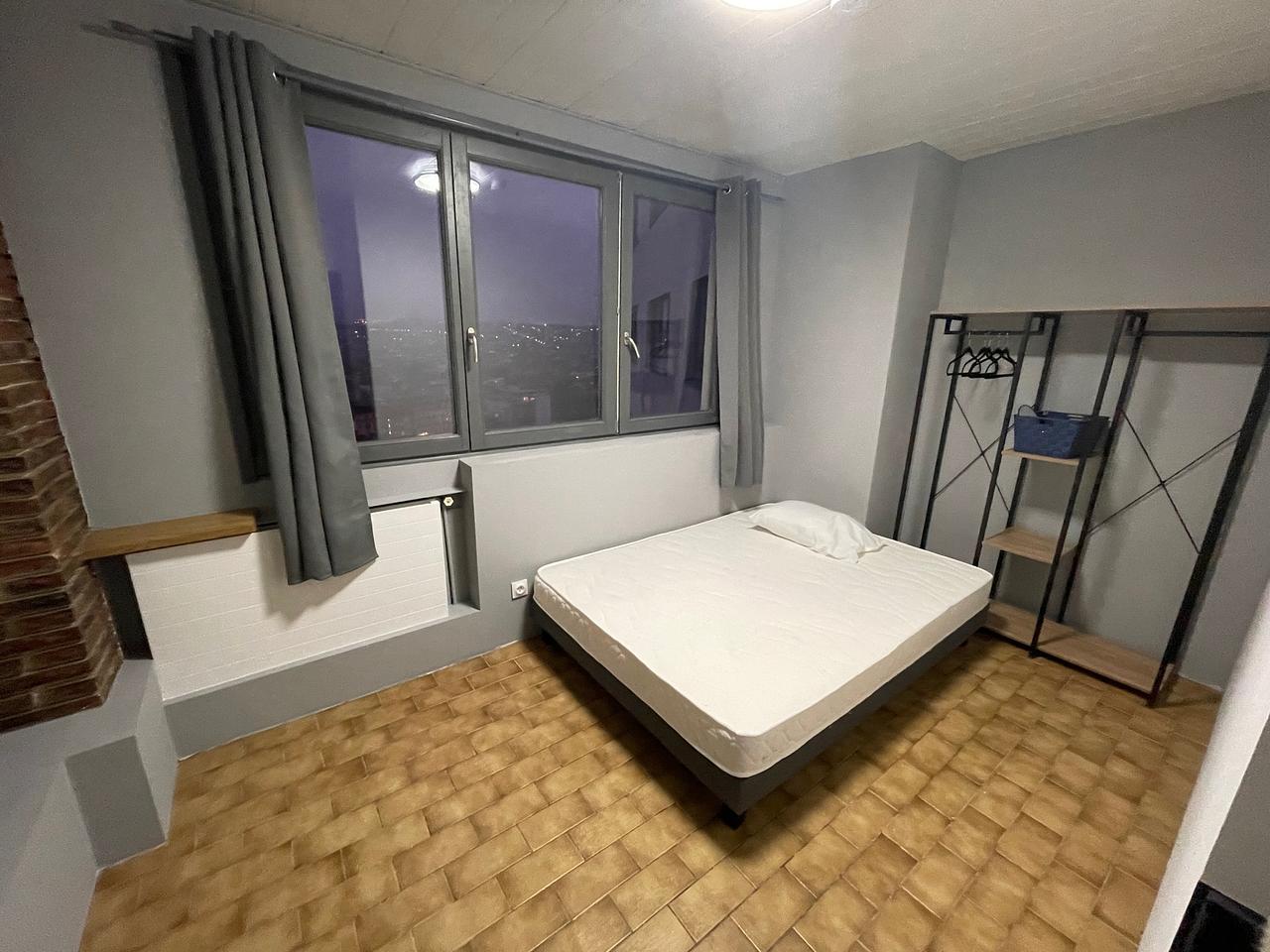 La chambre dispose d'un lit double , d'une penderie et d'un bureau.