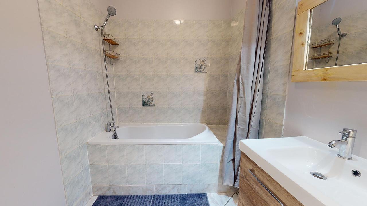 La salle de bain est fonctionnelle avec également un lave-linge, les WC sont séparés.