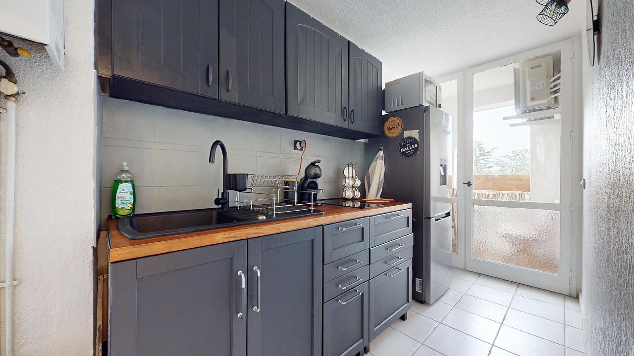 Un balcon vient compléter cet appartement. Cet appartement est complété par également une cave et un local vélos. Il est mis en location avec une place de parking.