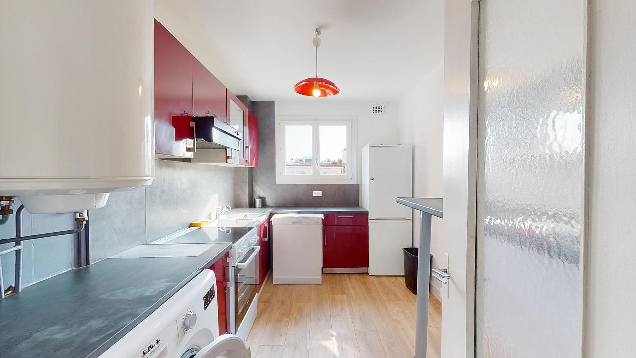 L’appartement se compose d’une cuisine indépendante, d’un séjour, d’une salle d’eau commune, d’un WC indépendant ainsi que de quatre chambres.