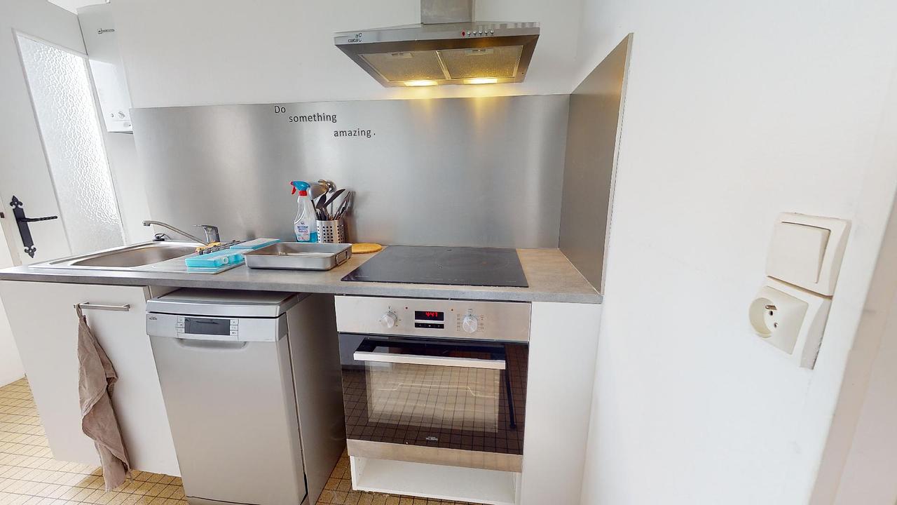 La cuisine s’équipe d’un four, de 4 plaques électriques, d’un lave-vaisselle, d’une hotte, d’un micro-onde, d’un grand frigidaire, et d’un espace buanderie avec machine à laver.