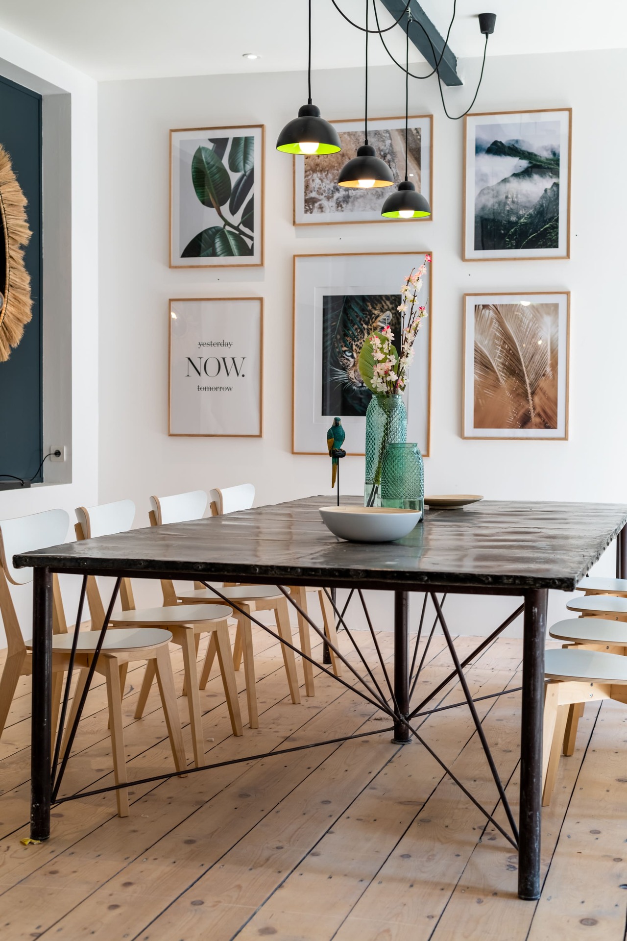 Il se compose de 10 chambres, 5 salles de bains dont deux privatives, trois wc et une buanderie. Grande pièce à vivre avec un coin coworking, deux cuisines, une belle salle à manger avec une table faite sur mesure.