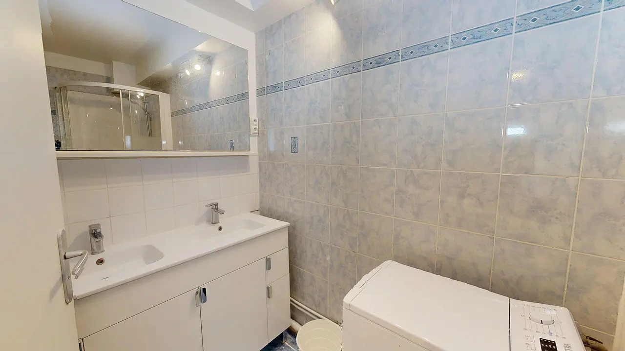 La première salle d’eau comprend une douche et un meuble de rangement. La seconde est équipée d’une douche, d’une double vasque avec miroir, d’un lave-linge et de rangements. Les WC sont séparés pour plus de confort.