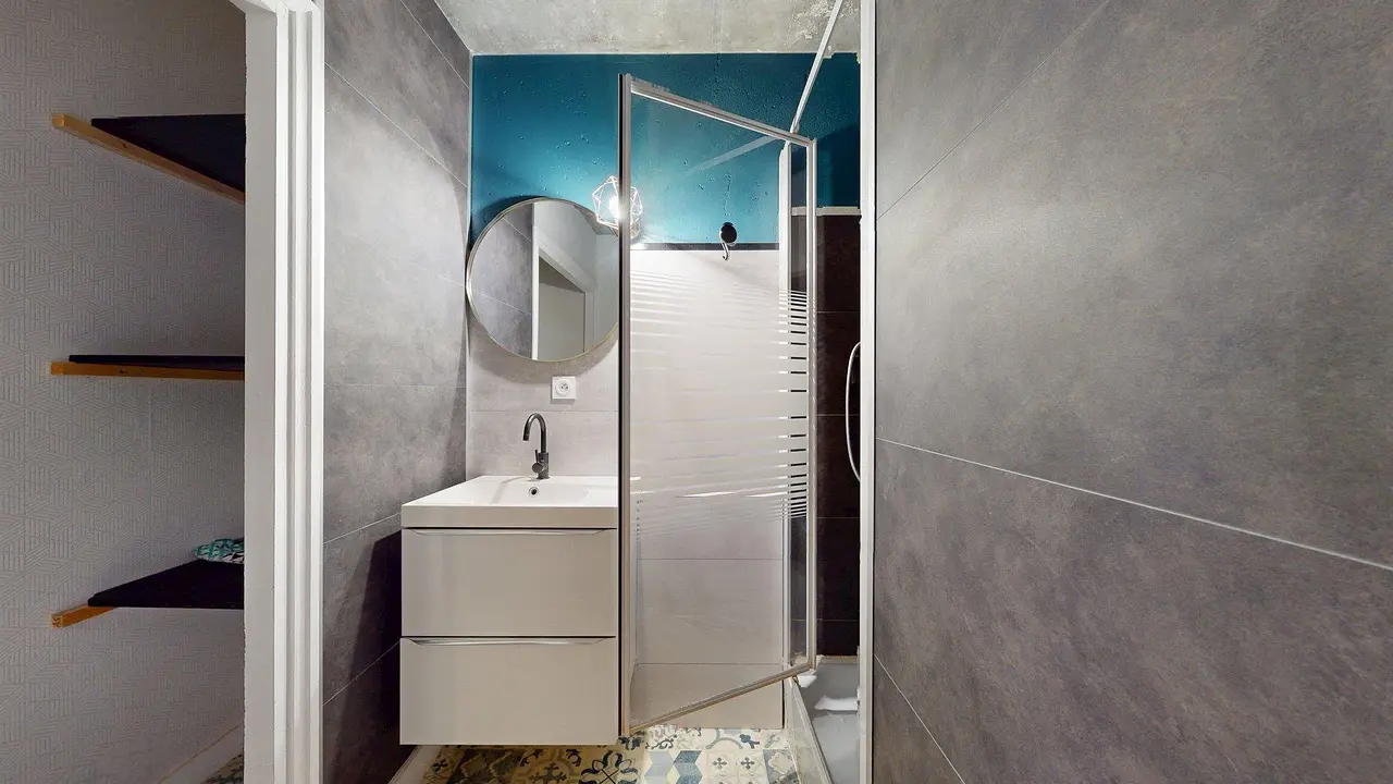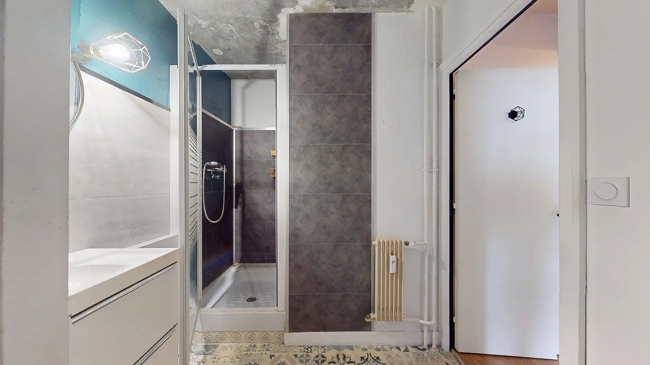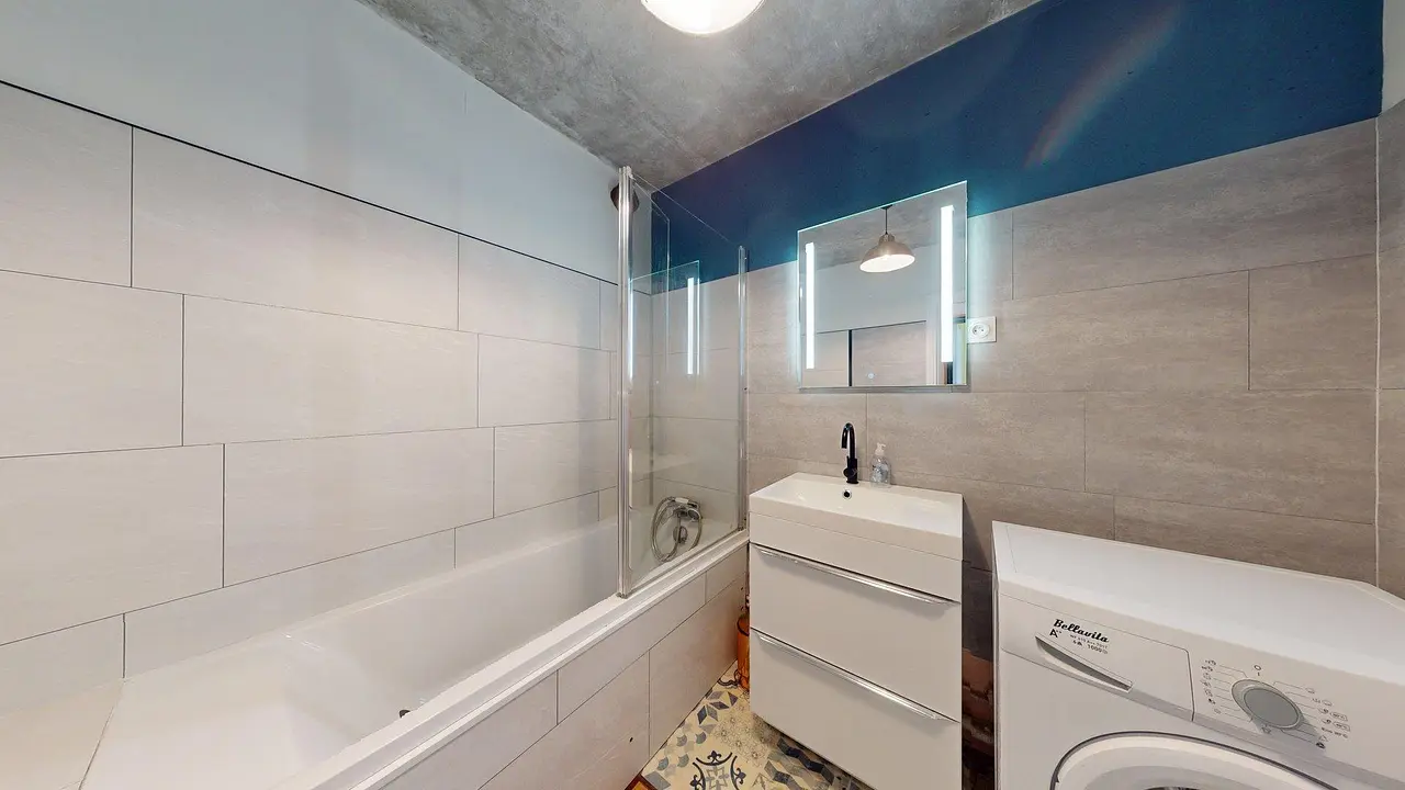 La salle d’eau comporte une douche, un meuble vasque avec miroir ainsi que des rangements. Une seconde salle de bains vient compléter le logement et une machine à laver est à votre disposition. Les WC sont séparés.