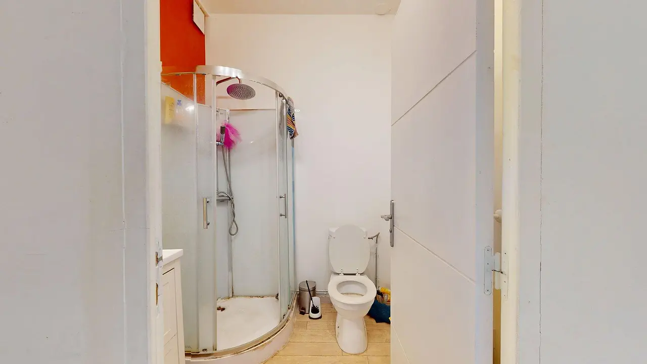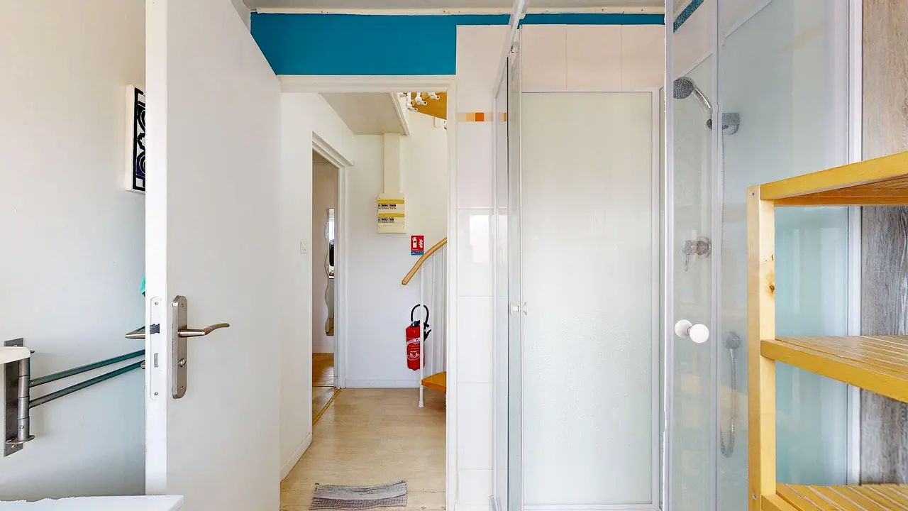 Au deuxième étage, une salle d'eau est accessible et dispose d'une cabine de douche, d'un meuble vasque avec un miroir, d'un meuble de rangements ainsi que d'un WC. Les chambres 4, 5 et 6 sont à cet étage.