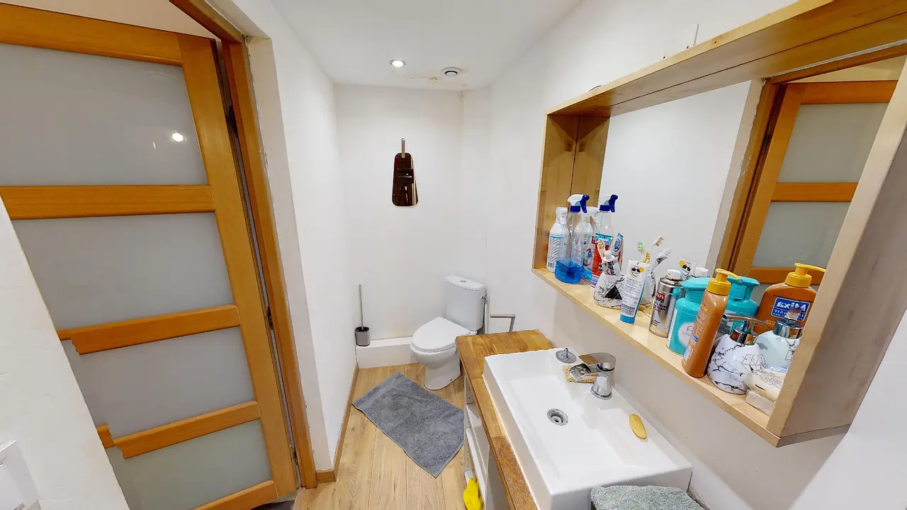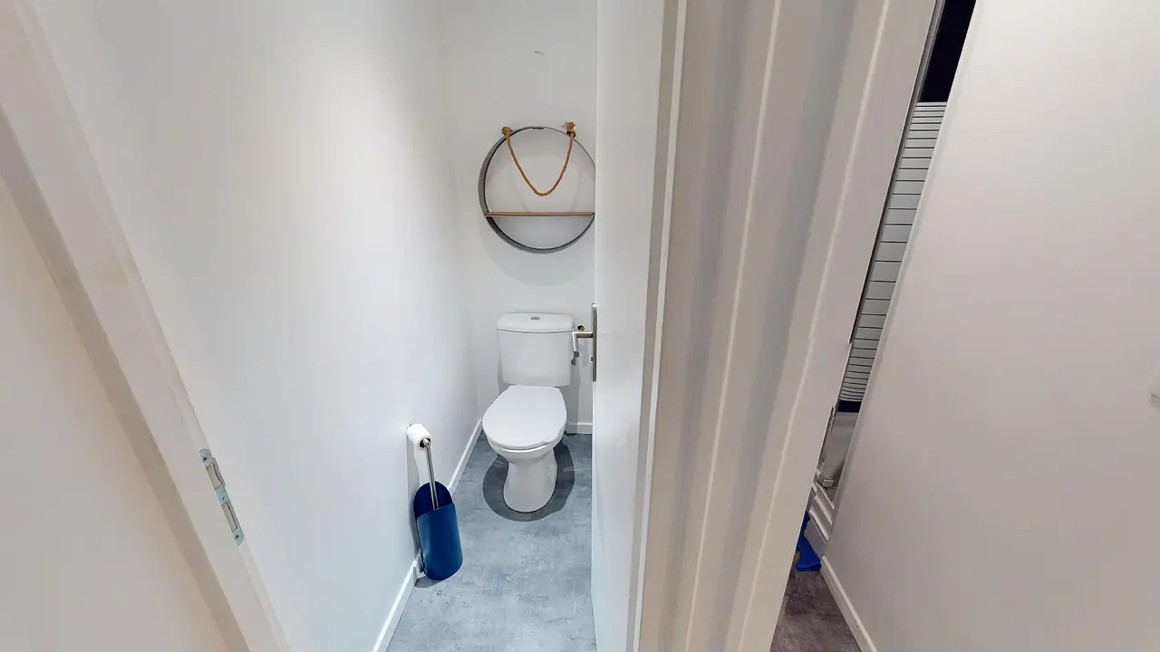 La chambre 2 n’a pas pu être shootée lors de la visite virtuelle. Cependant cette chambre est entièrement équipée (lit, bureau, chambre et rangements).
