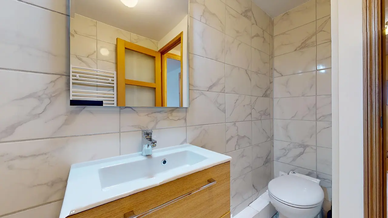 Au deuxième étage, vous trouverez deux des quatre chambres, dont l'une possède sa propre salle de bain privative. Le troisième et dernier étage abrite les deux autres chambres, ainsi que la troisième salle de bain, qui comprend une douche, un meuble vasque et des toilettes.