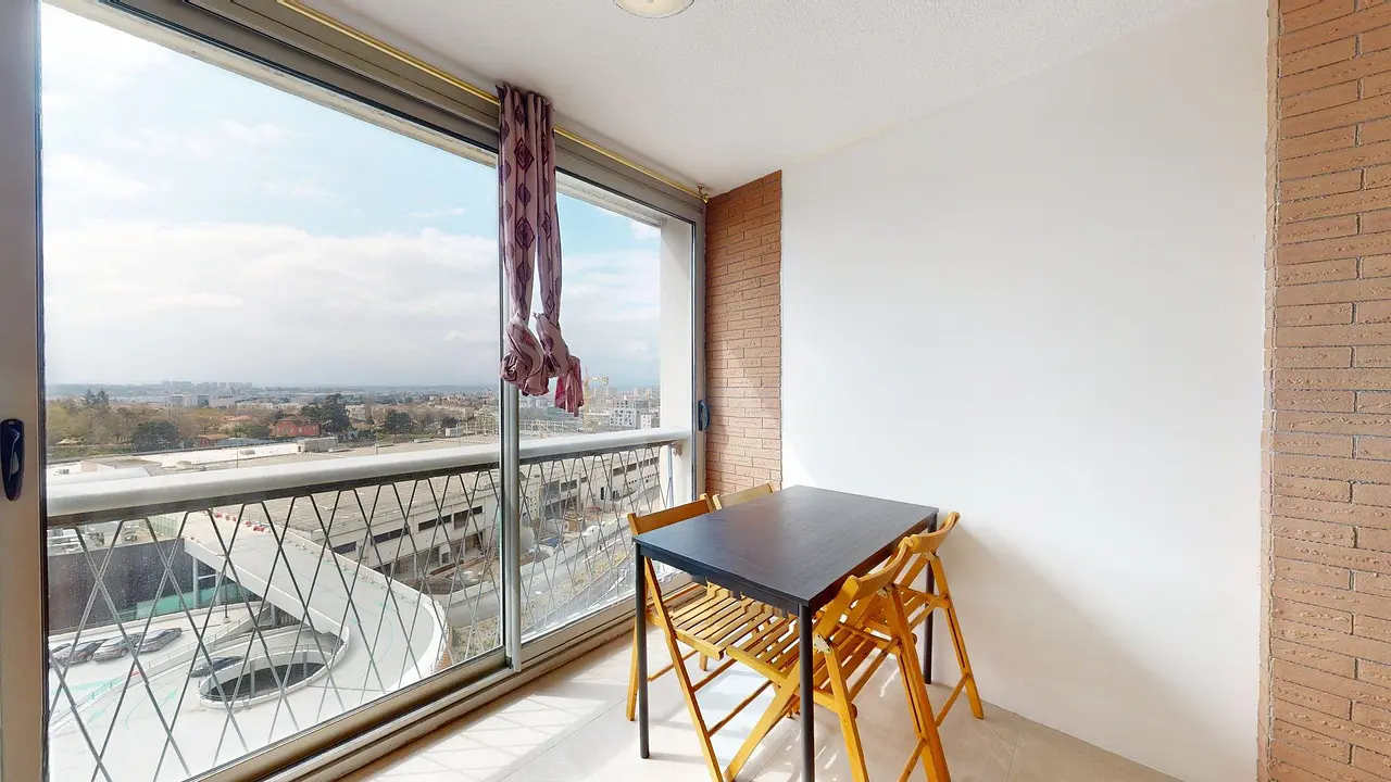 Le logement s'ouvre sur une salle à manger lumineuse, grâce à une grande baie vitrée offrant une vue dégagée. La pièce est équipée d'une table à manger pouvant accueillir 4 personnes.